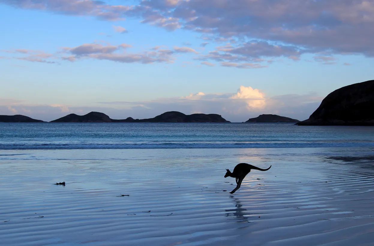 “Lucky Bay: Beautiful Lucky Bay in Esperance, Western Australia, is home to many kangaroos. Not only is the turquoise water and white sand a sight to see but at sunset the kangaroos bounce their way across the sand looking for dinner”. (© Mandy Wilson/National Geographic Photo Contest)