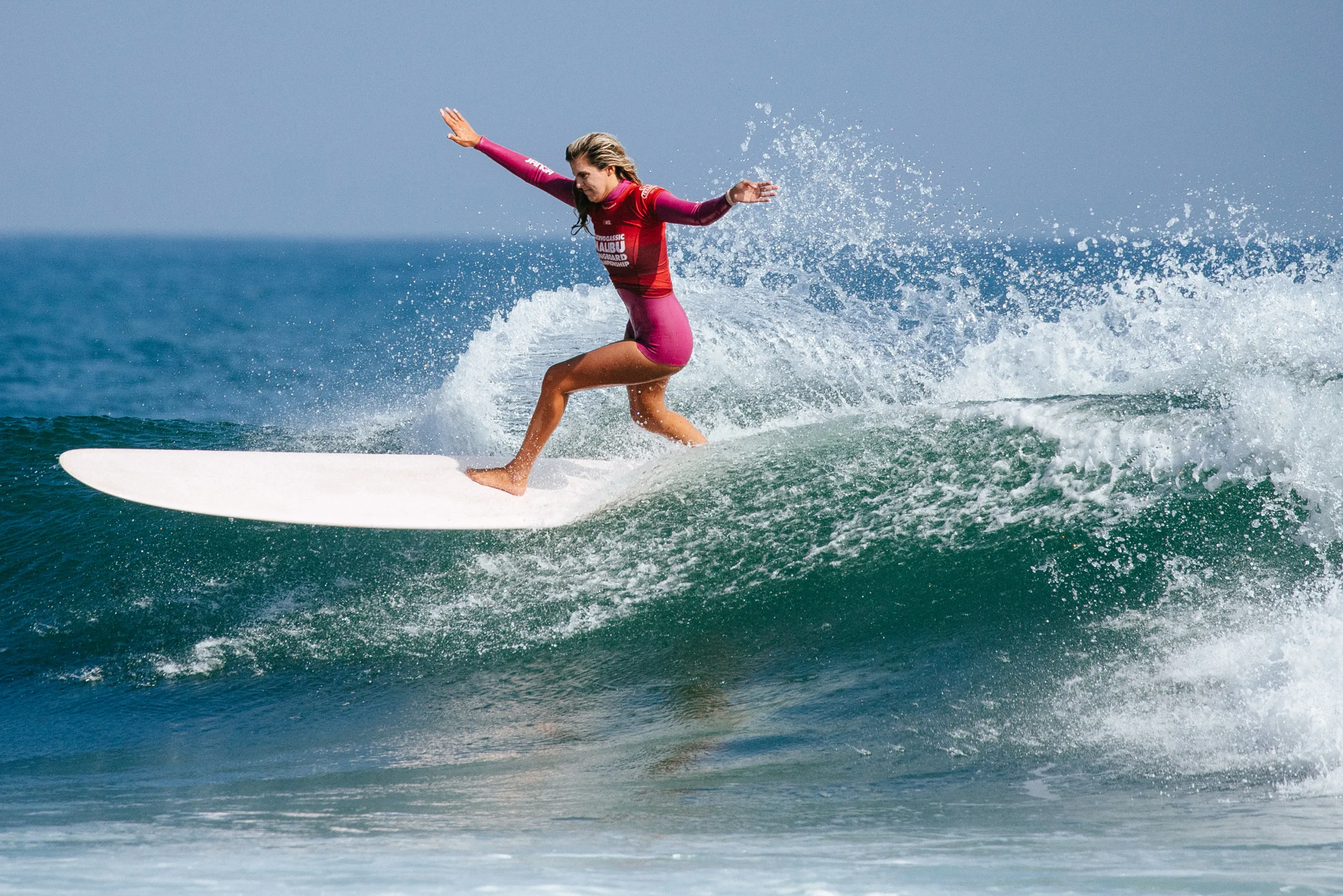 WSL Longboard Champion Soleil Errico of United States surfs in Heat 1 of the Semifinals at the Cuervo Classic Malibu Longboard Championship on October 5, 2022 at Malibu, California, United States. (Photo by Aaron Hughes/World Surf League via Getty Images)