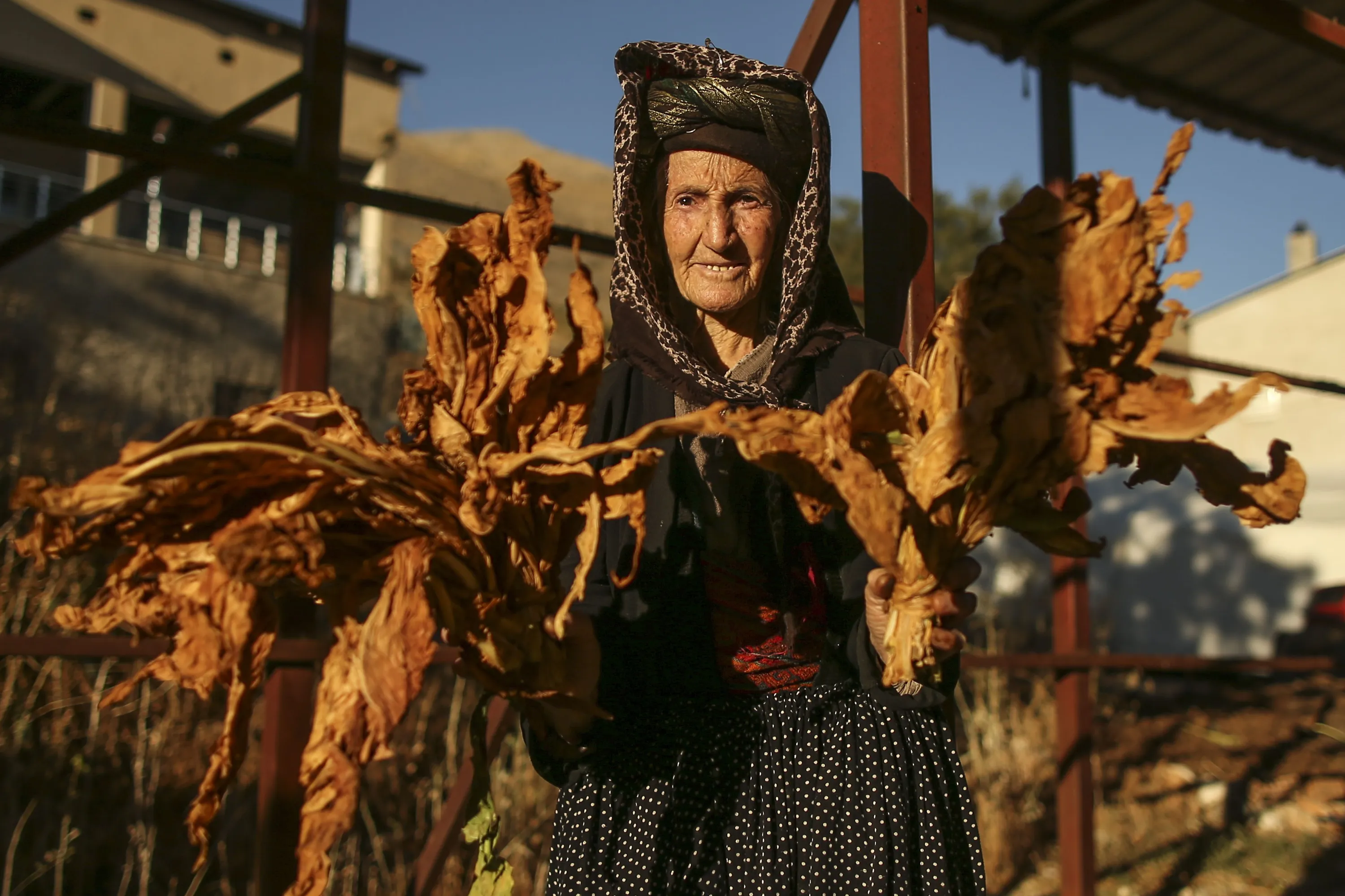 Ayse Gunduzalp, 75, holds dried tobacco leaves during the harvest season in Kurudere village, Adiyaman province, southeast Turkey, Tuesday, September 27, 2022. Official data released Monday Oct. 3, 2022 shows consumer prices rise 83.45% from a year earlier, further hitting households already facing high energy, food and housing costs. Experts say the real rate of inflation is much higher than official statistics, at an eye-watering 186%. (Photo by Emrah Gurel/AP Photo)