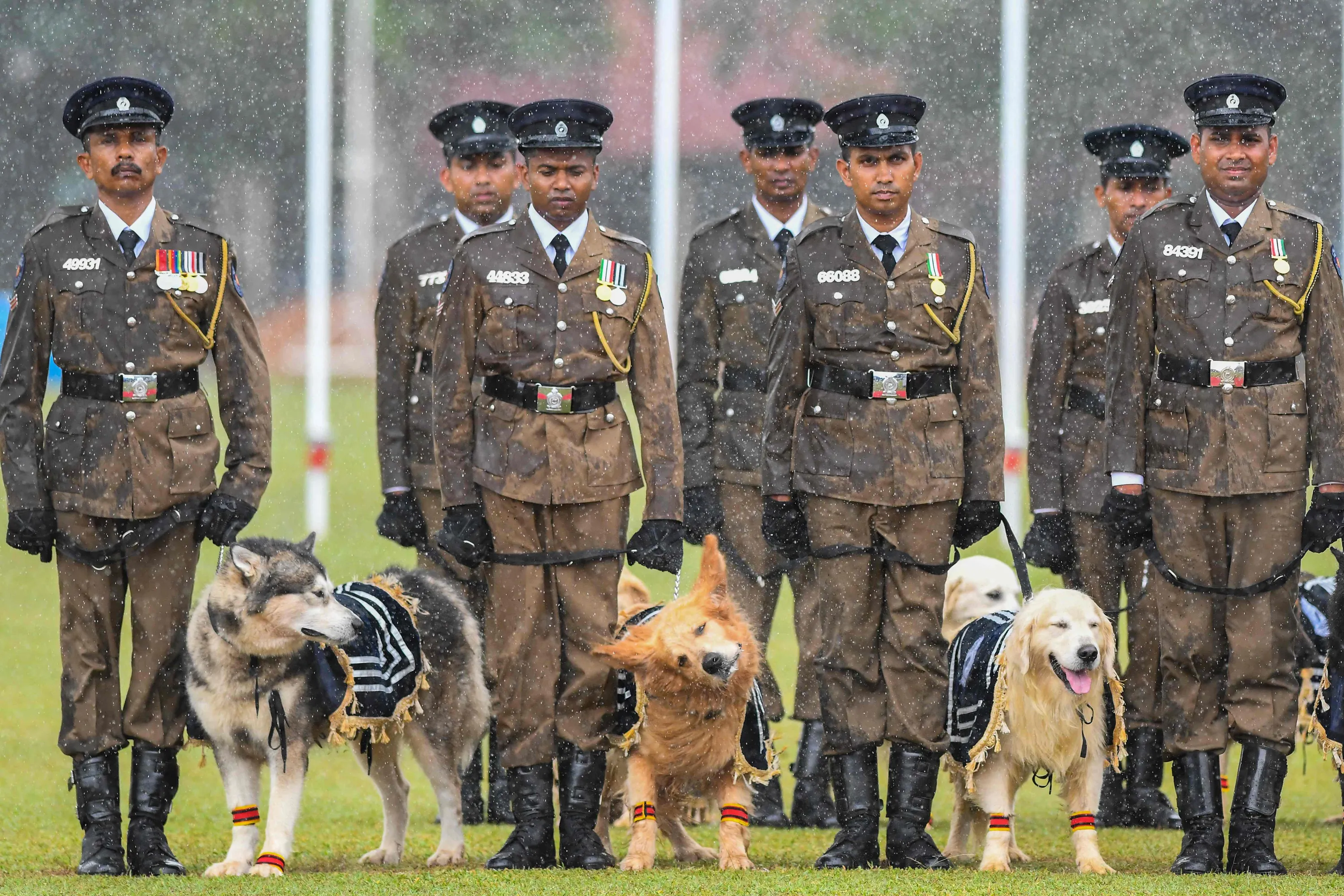 Members of Sri Lanka police personnel and their dogs take part in the 156th Sri Lanka Police Day celebrations in Colombo on September 3, 2022. (Photo by Ishara S. Kodikara/AFP Photo)