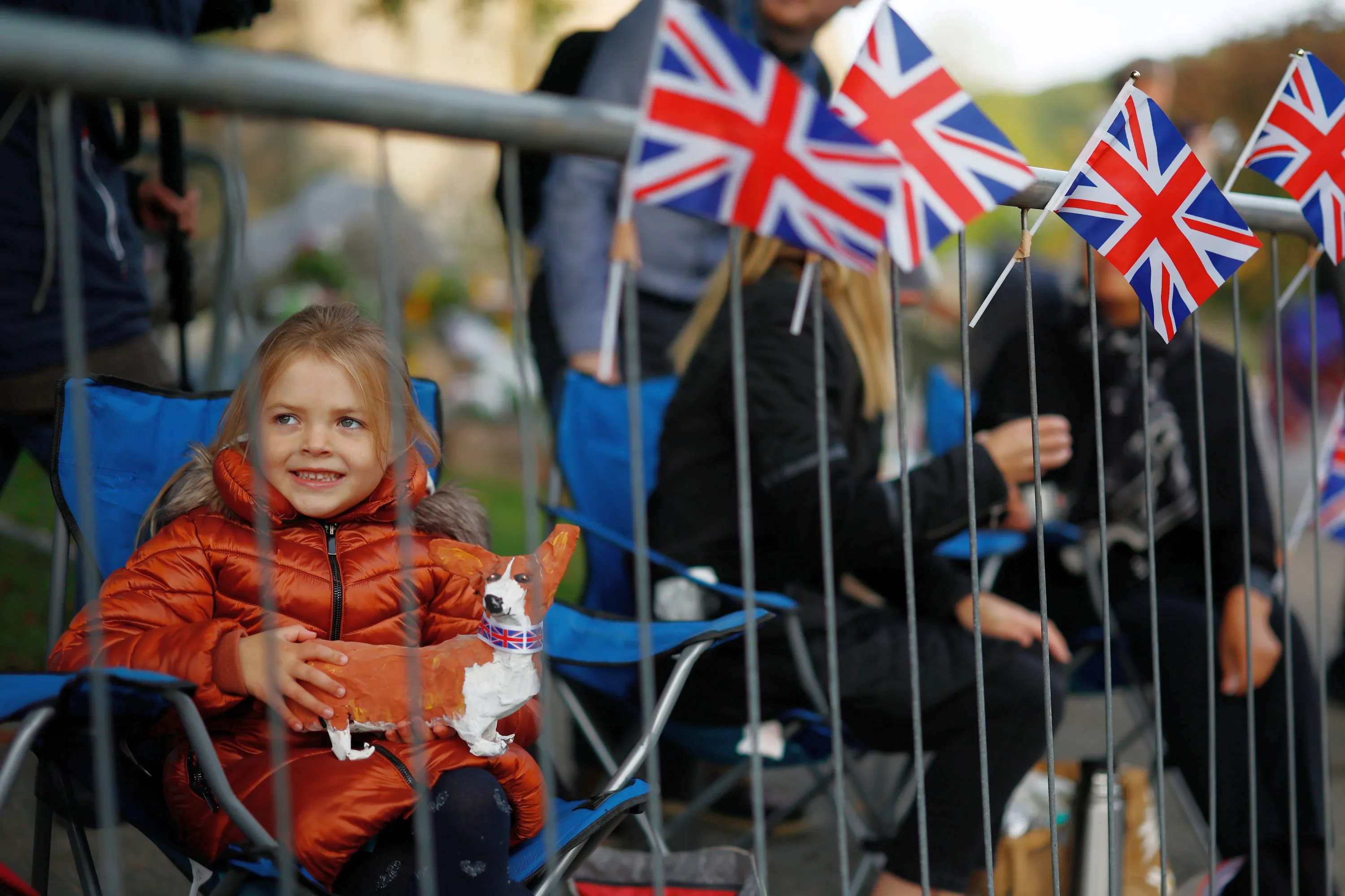 People gather along the streets as they wait to view the cortege carrying the coffin of the late Queen Elizabeth II on September 11, 2022 in Ballater, United Kingdom. Elizabeth Alexandra Mary Windsor was born in Bruton Street, Mayfair, London on 21 April 1926. She married Prince Philip in 1947 and ascended the throne of the United Kingdom and Commonwealth on 6 February 1952 after the death of her Father, King George VI. Queen Elizabeth II died at Balmoral Castle in Scotland on September 8, 2022, and is succeeded by her eldest son, King Charles III. (Photo by Jeff J. Mitchell/Getty Images)