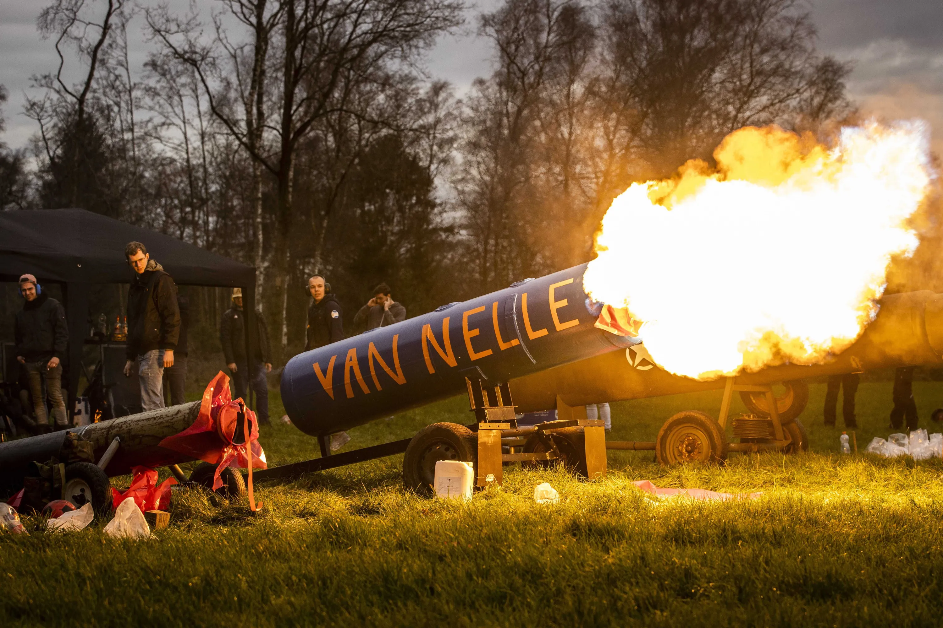 Residents shoot carbide shots on New Year's Eve in the Overijssel municipality of Wierden, The Netherlands, 31 December 2021. Because carbide shooting does not fall under fireworks, it also does not fall under the one-off national fireworks ban that has been announced as a measure against the spreading of the coronavirus disease (COVID-19) pandemic. (Photo by Vincent Jannink/EPA/EFE)
