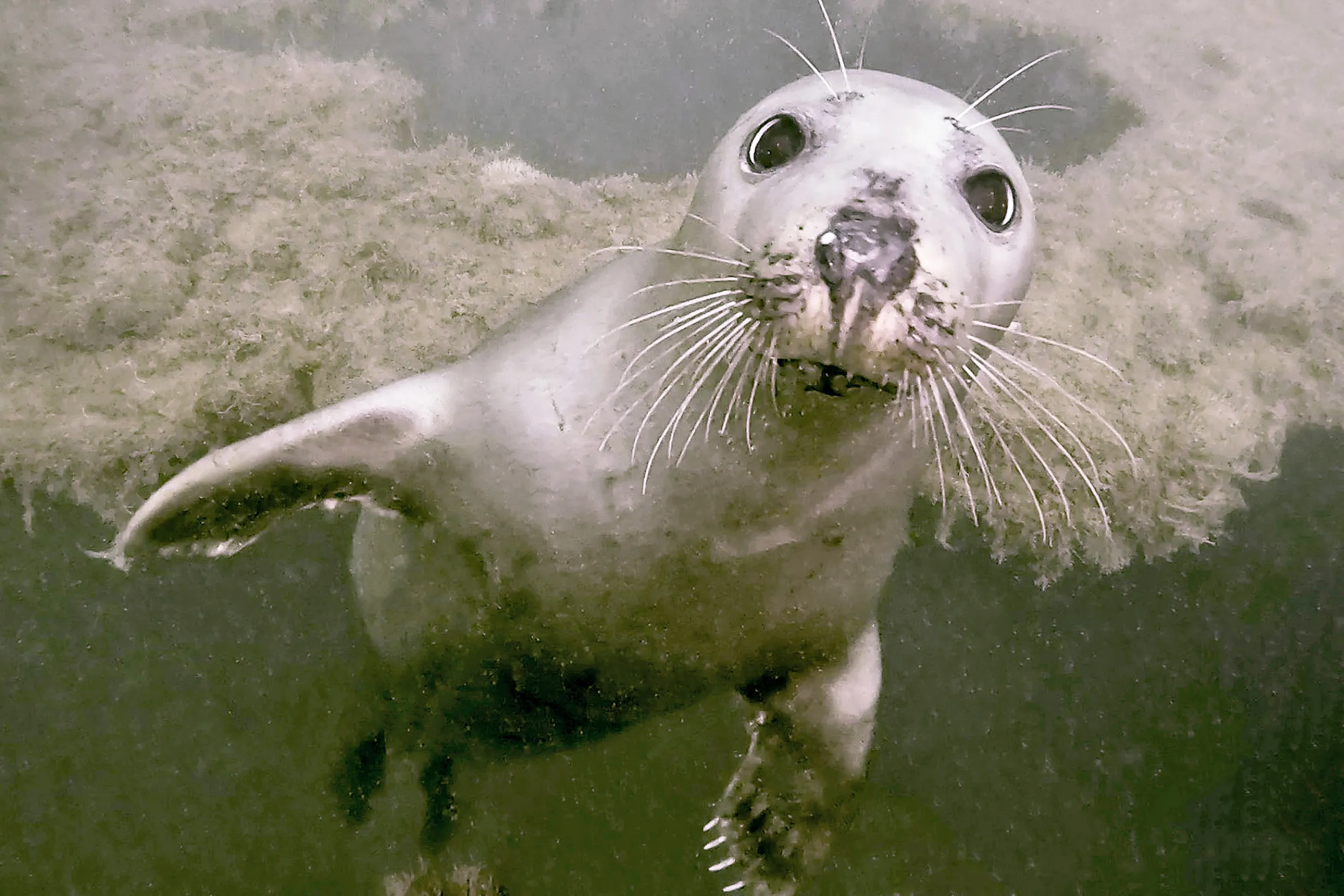 This is the moment an inquisitive seal decided to play with some lucky scuba divers in Portland Harbour, Dorset early October 2022. (Photo by Stephanie Pettitt/Bournemouth News and Picture Service)