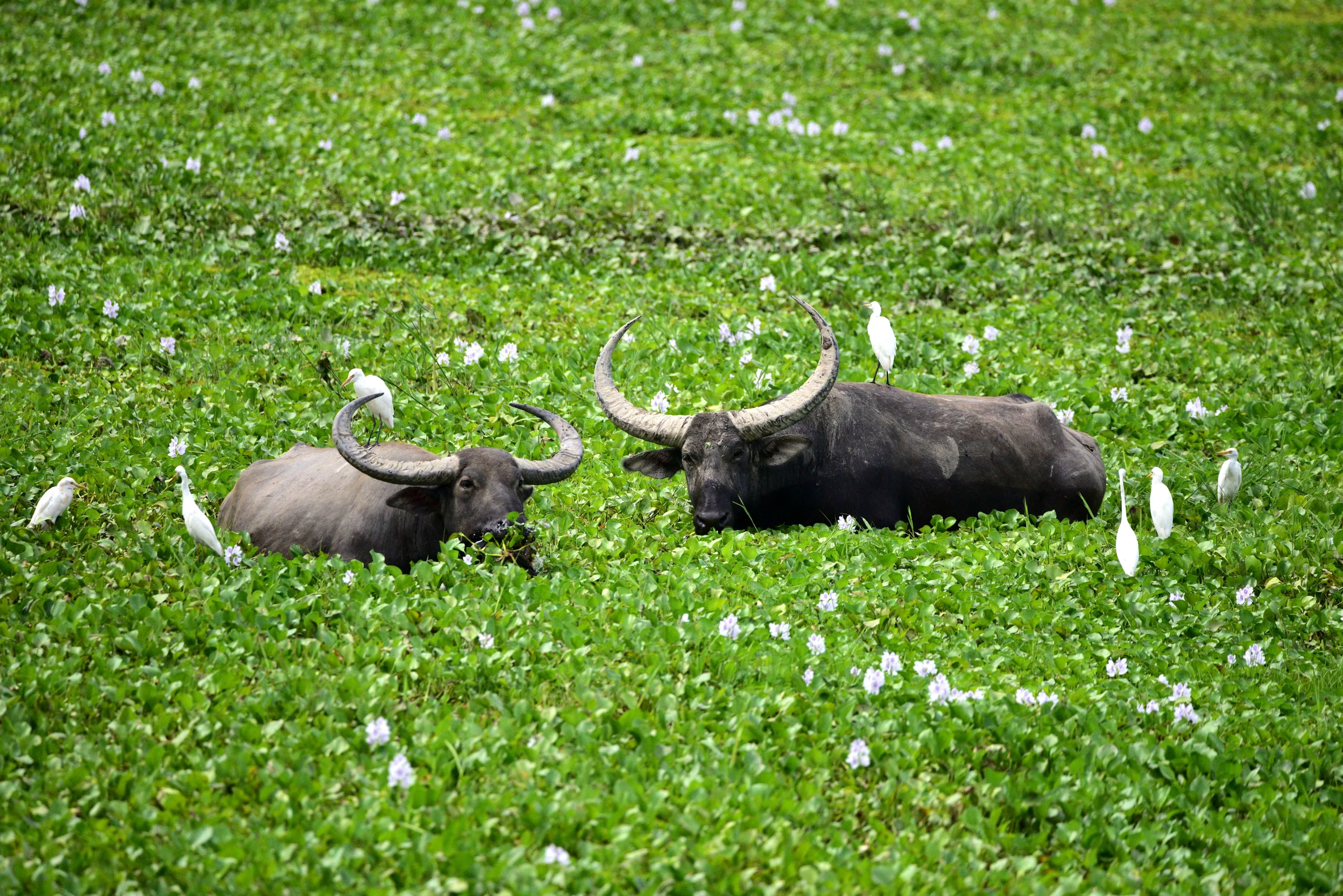 Wild buffalos seen graze inside Burapahar Range of Kaziranga National Park in the India's northeast state of Assam on Sepember 22,2022. (Photo by Anuwar Hazarika/NurPhoto via Getty Images)