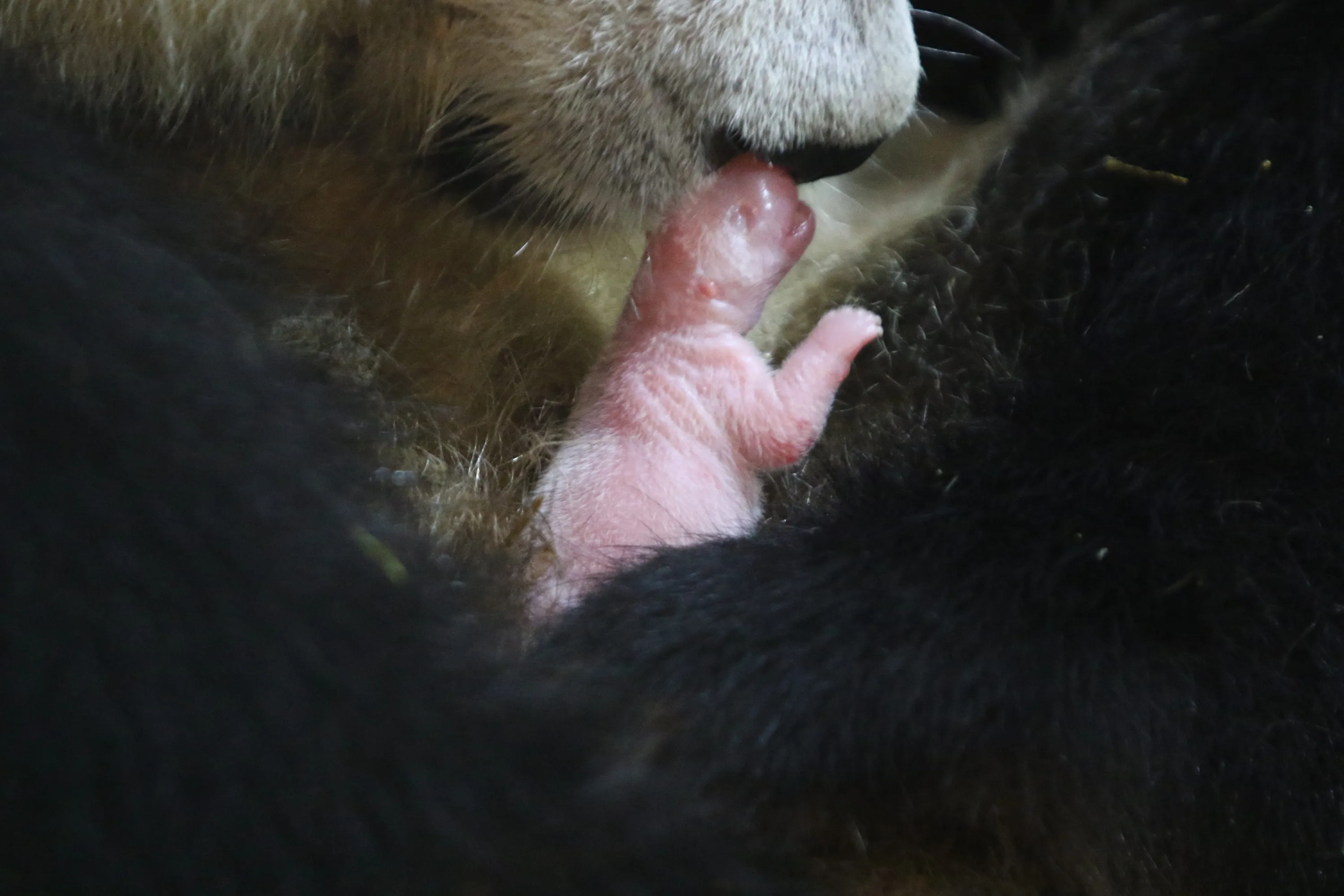 Giant panda “An An” holds her newborn baby in her arms at the Qinling Giant Panda Research Center on September 19, 2022 in Xi'an, Shaanxi Province of China. Giant panda “An An” on Monday gave birth to a female cub that weighed 132.8 grams upon birth. (Photo by Zhao Pengpeng/Hua Shang Daily/VCG via Getty Images)