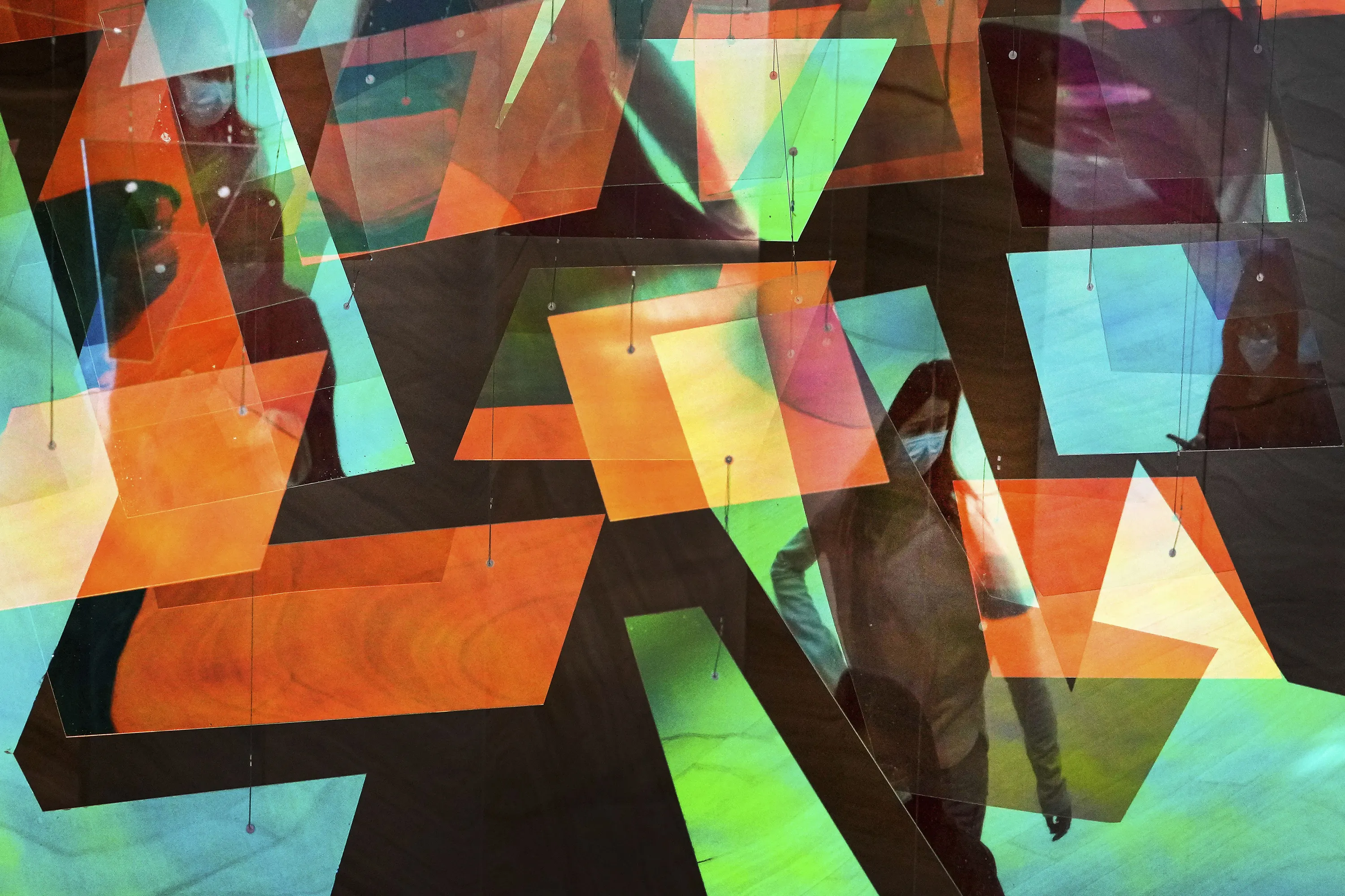 The colorful panels reflecting women wearing face masks visiting a shopping mall in Beijing, Tuesday, October 4, 2022. (Photo by Andy Wong/AP Photo)