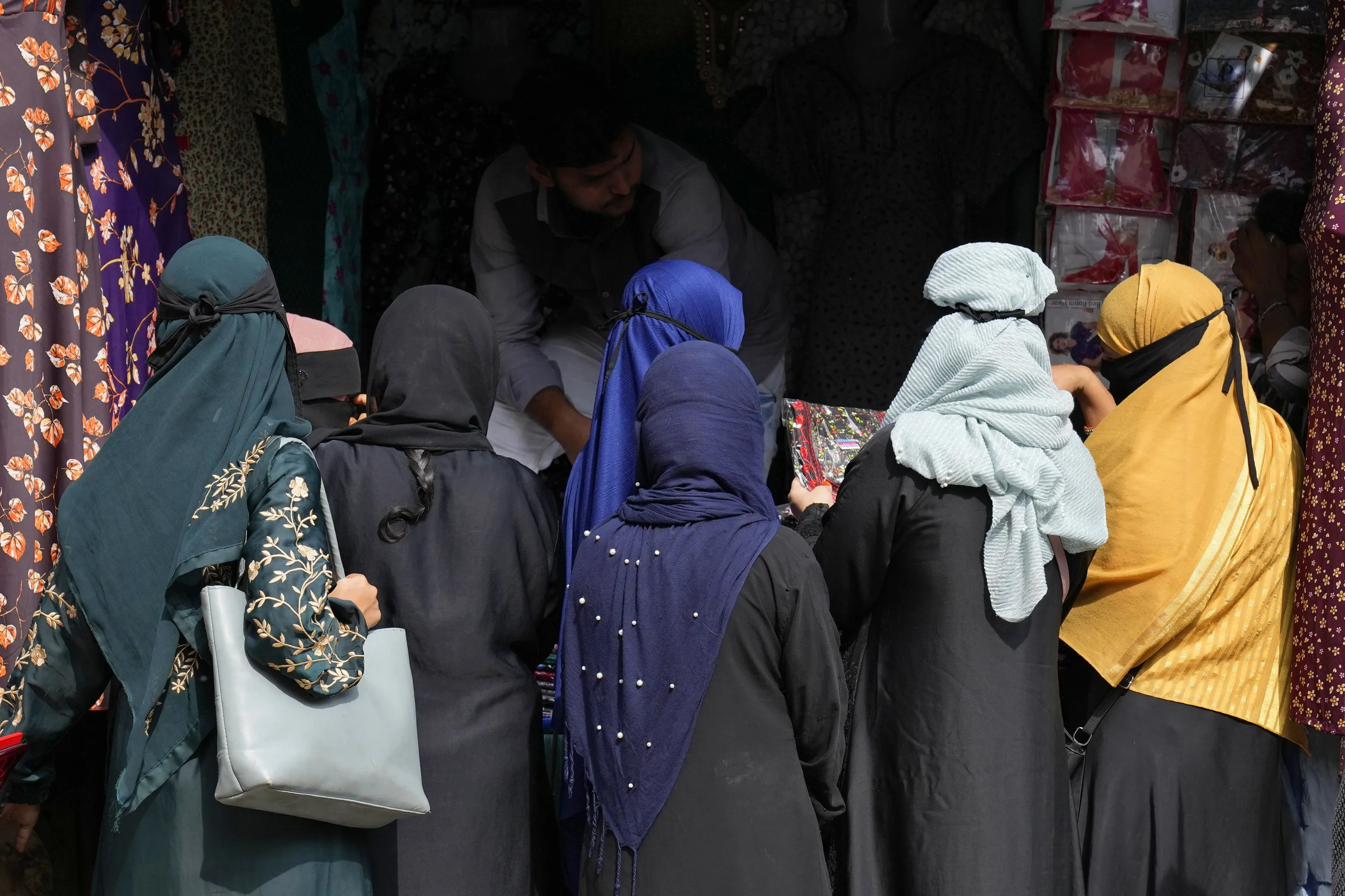 A group of veiled Muslim women shop for clothes in Bengaluru, India, Thursday, October 13, 2022. Two judges on India's top court on Thursday differed over a ban on the wearing of the hijab, a headscarf used by Muslim women, in educational institutions and referred the sensitive issue to a larger bench of three or more judges to settle. (Photo by Aijaz Rahi/AP Photo)