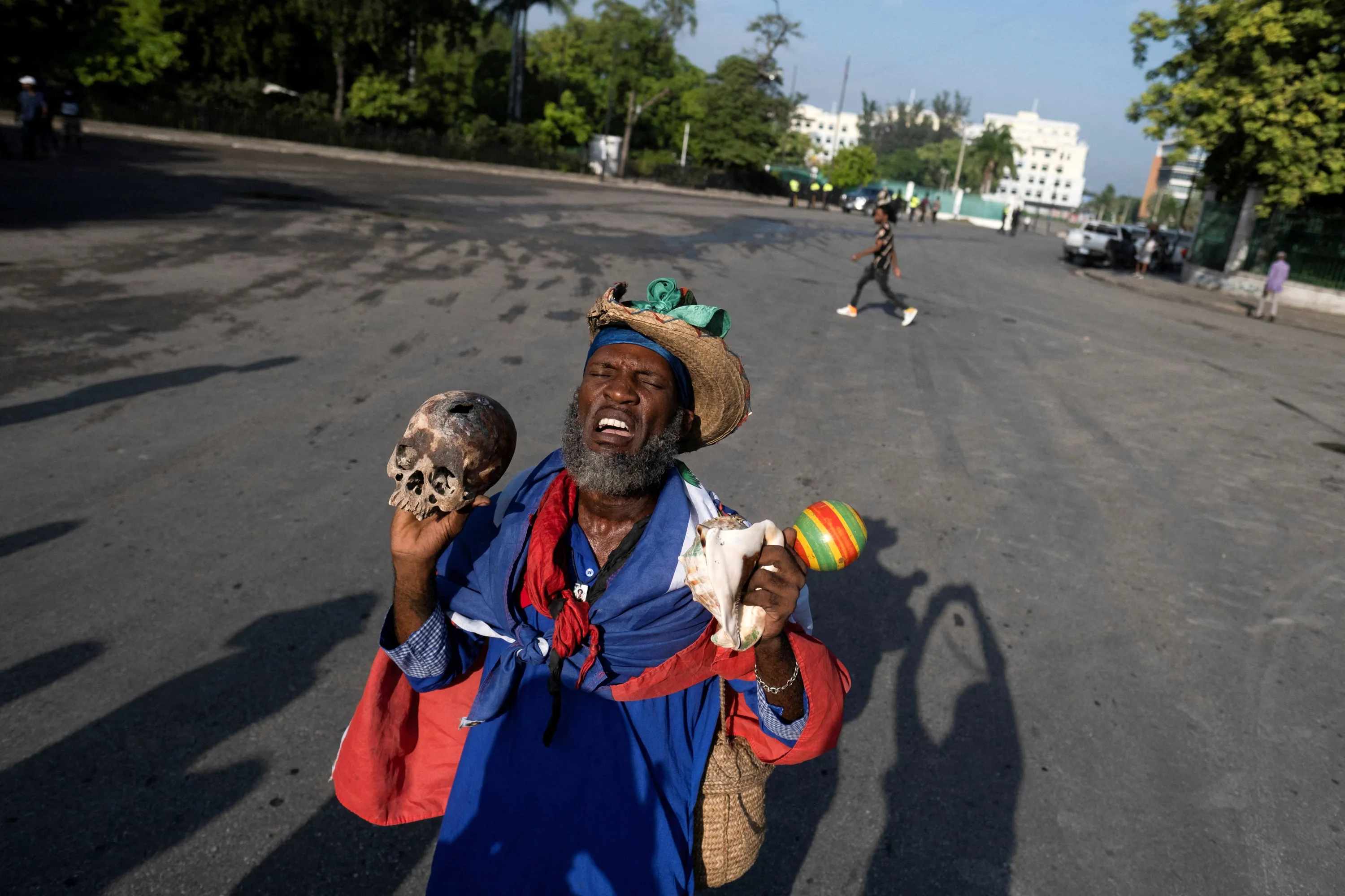 A man protests against Haitian Prime Minister Ariel Henry after he visited the National Pantheon Museum to honor revolutionary leaders Alexandre Petion and Jean Jacques Dessalines in Port-au-Prince, Haiti on October 17, 2022. (Photo by Ricardo Arduengo/Reuters)