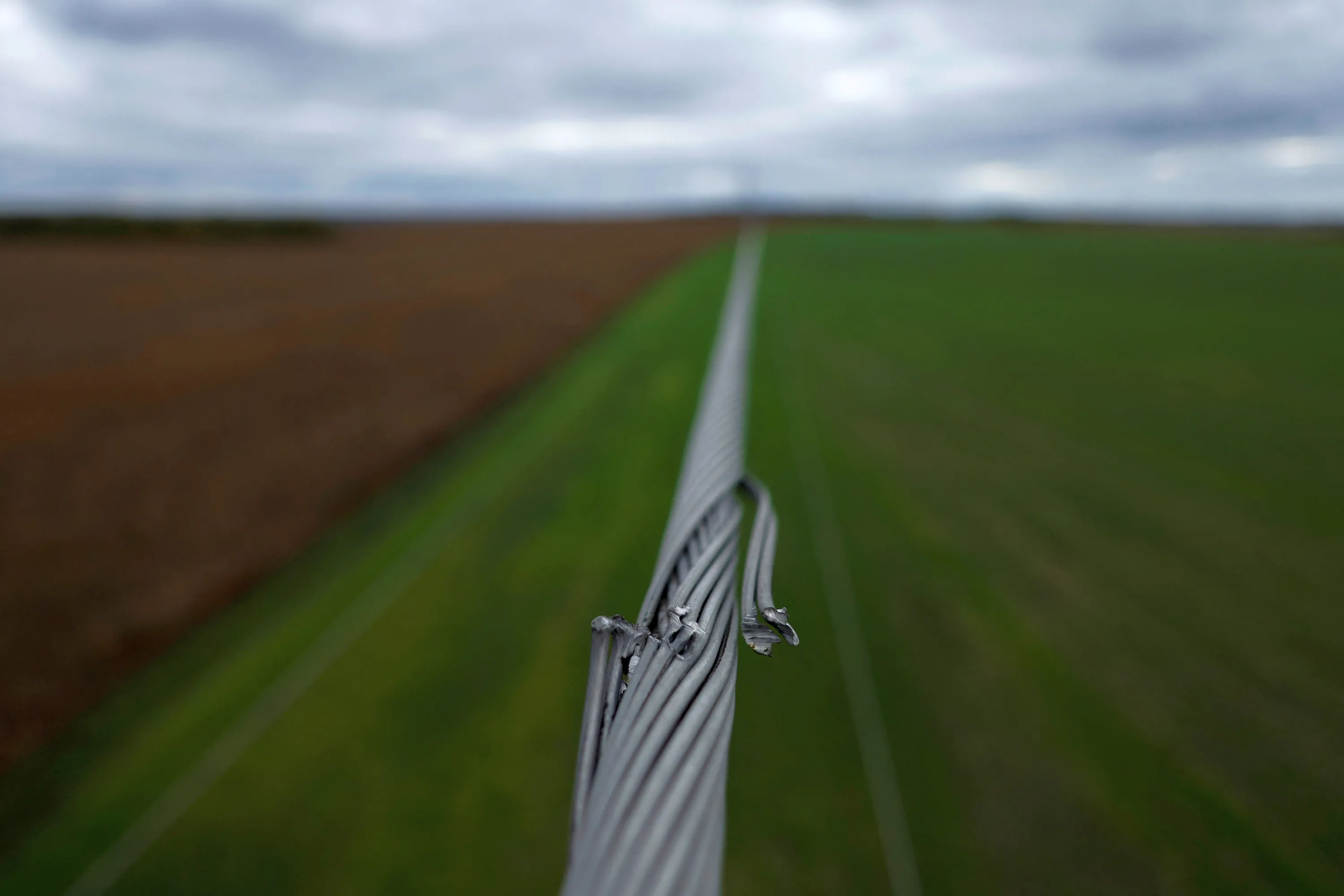 An electricity power line is seen damaged from shelling above a former battlefield, amid Russia's attack on Ukraine, in Kharkiv region, Ukraine on October 21, 2022. (Photo by Clodagh Kilcoyne/Reuters)