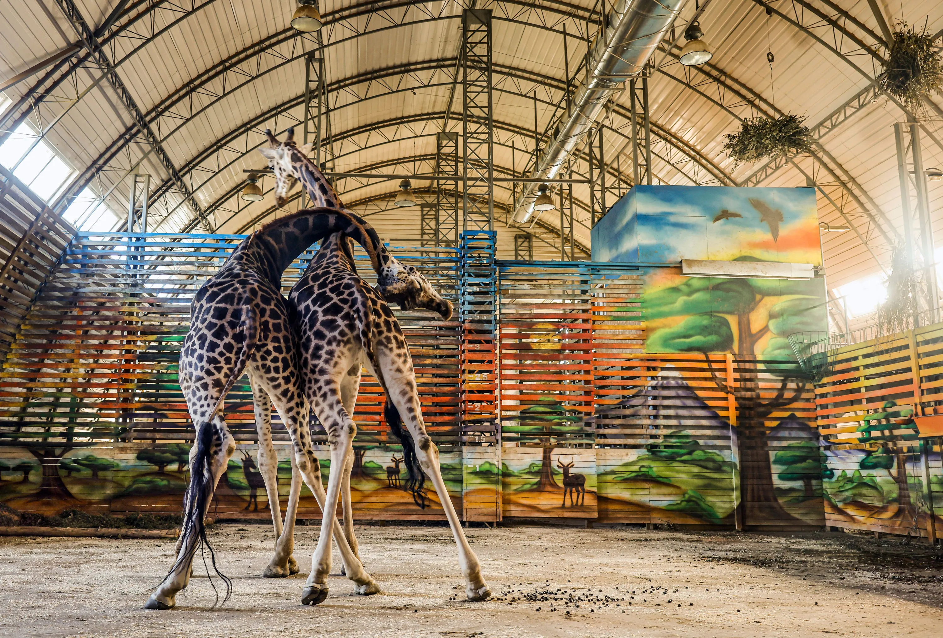 Two giraffes at the zoo in Mykolaiv, Ukraine, 24 October 2022. Nine rockets hit the area of the zoo at the beginning of the war. Now the zoo opens only at weekends. Russian troops on 24 February entered Ukrainian territory, starting a conflict that has provoked destruction and a humanitarian crisis. (Photo by Hannibal Hanschke/EPA/EFE/Rex Features/Shutterstock)