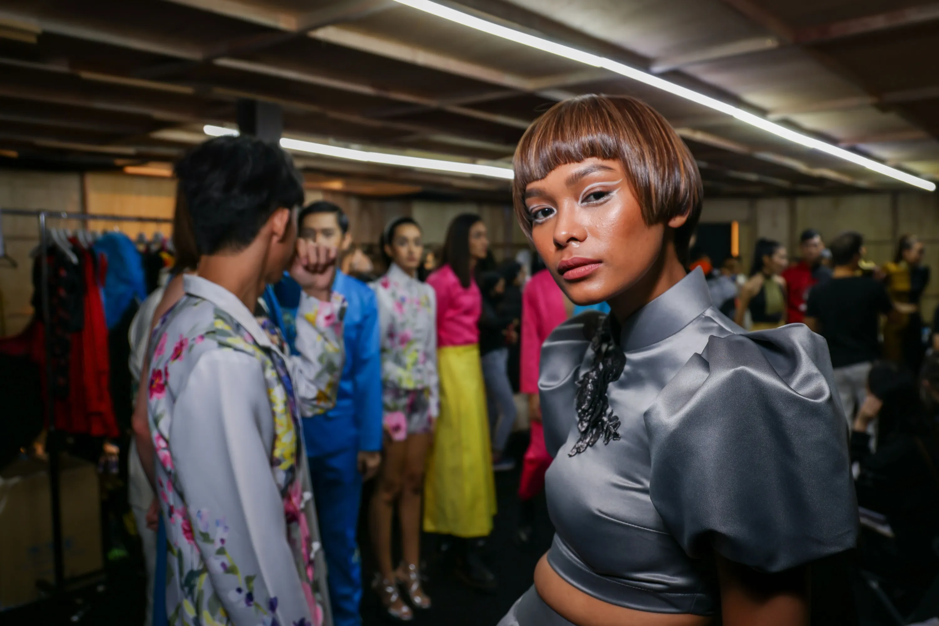 A model poses for a photo at the backstage of a fashion show by Bent during Kuala Lumpur Fashion Week 2022 on August 17, 2022 in Pavilion, Kuala Lumpur, Malaysia. The annual fashion showcase has set out to create a platform where Malaysian designers are able to highlight their work. This year marks the 10th anniversary celebrating the Malaysian fashion industry. (Photo by Annice Lyn/Getty Images)