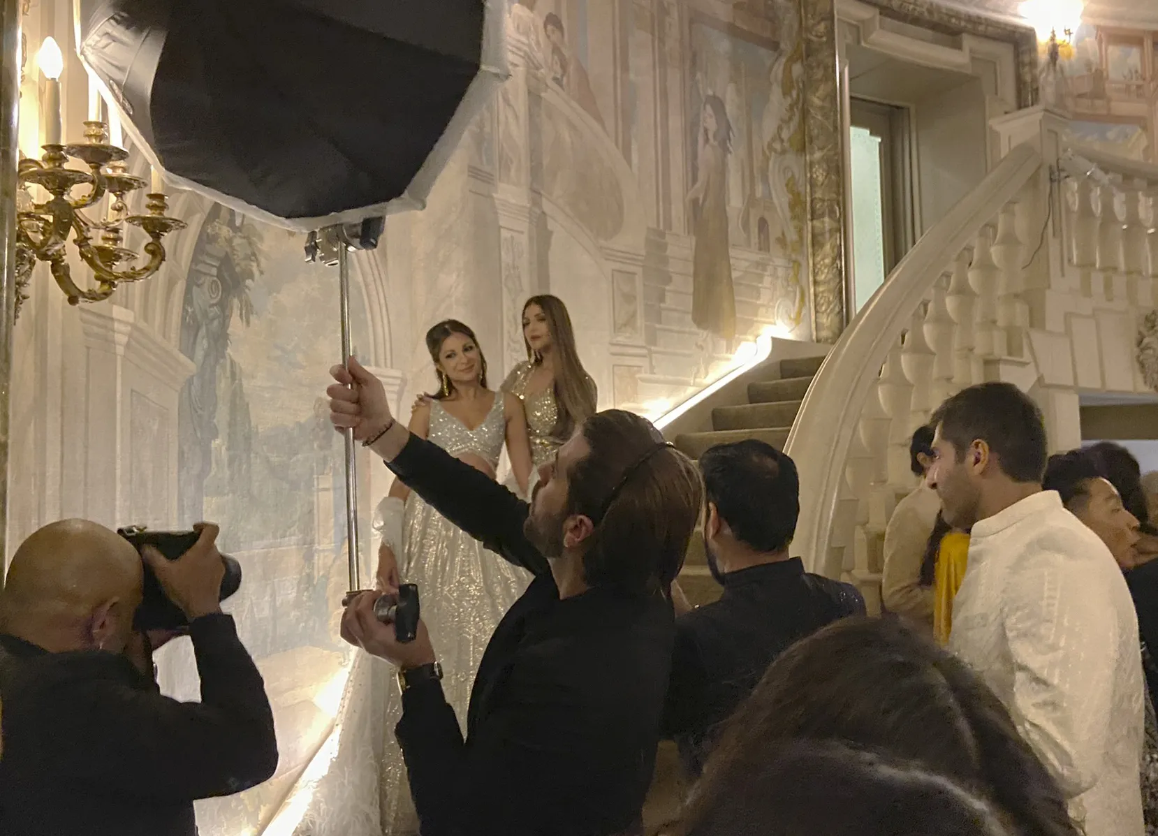 Entrepreneur Anjula Acharia and designer Falguni Peacock pose for a photographer at a Diwali celebration at The Pierre hotel in New York on Saturday, October 22, 2022. The annual party, now in its third year, is intended to highlight Diwali by bringing together high-powered South Asians with other New York luminaries. (Photo by Mallika Sen/AP Photo)