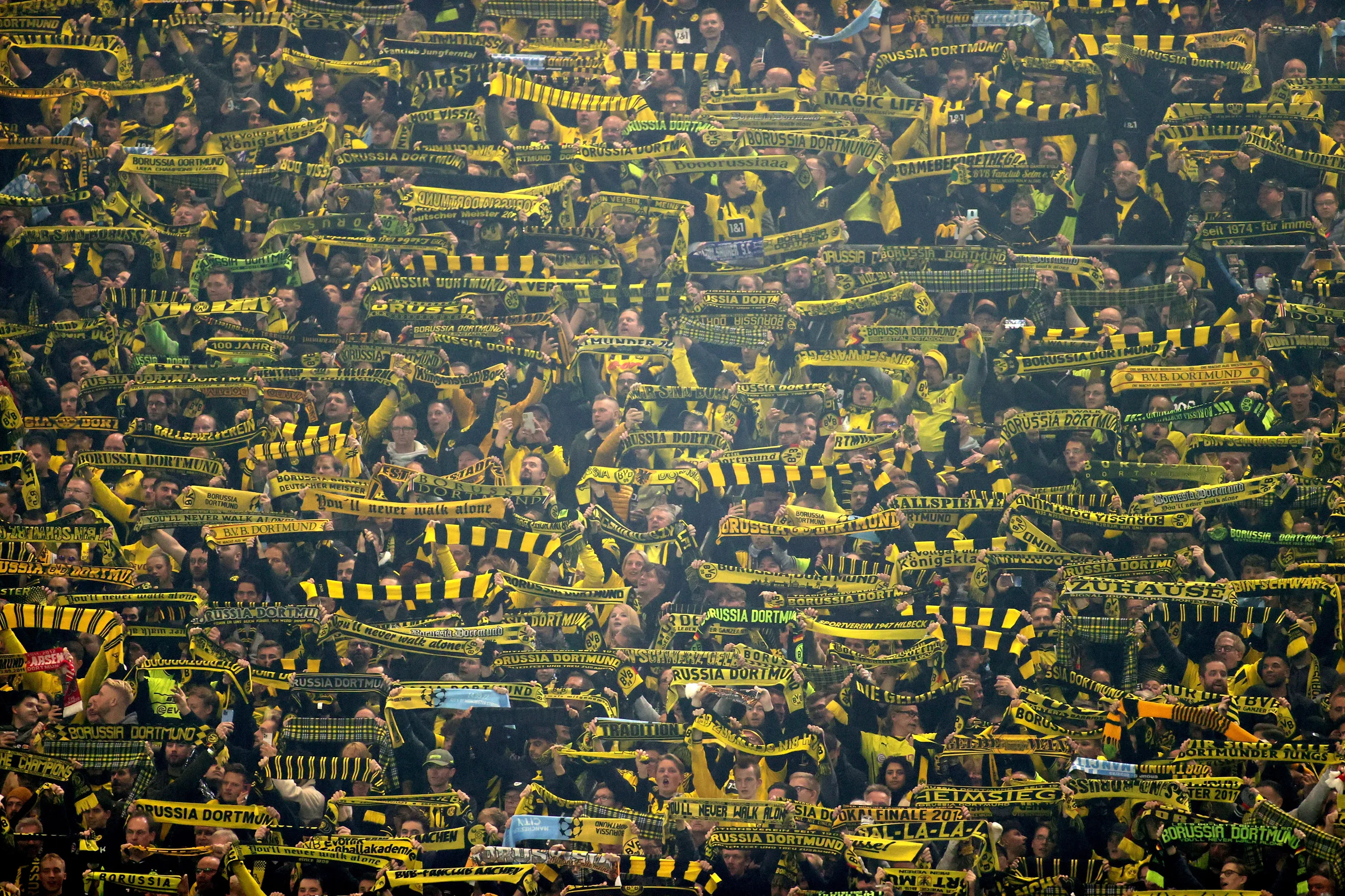 Fans of Dortmund before the UEFA Champions League group G match between Borussia Dortmund and Manchester City in Dortmund, Germany, 25 October 2022. (Photo by Friedemann Vogel/EPA/EFE)