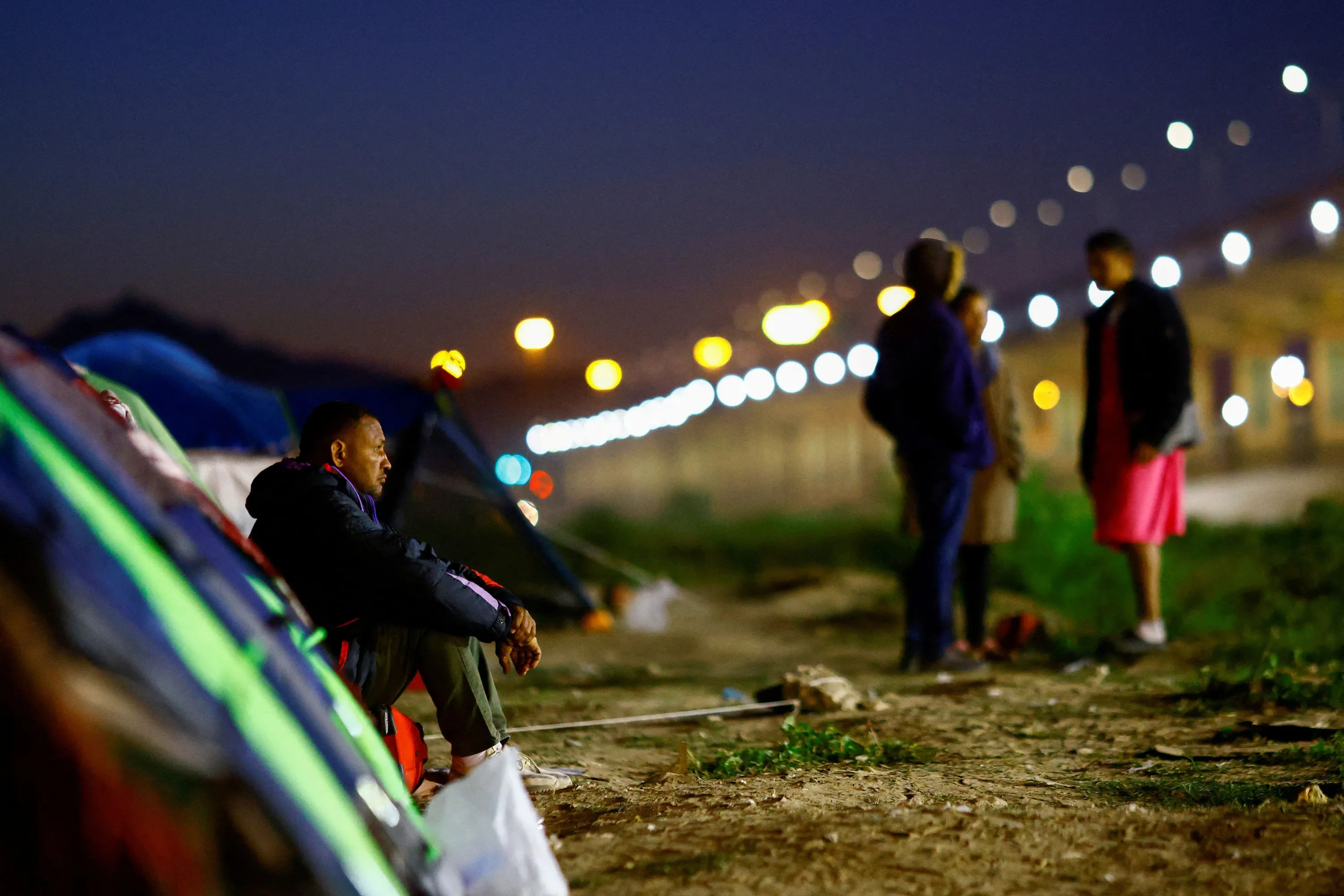 Angel Avila, a migrant from Venezuela who has not crossed into the U.S. due to the new immigration policies, sits while camping on the banks of the Rio Bravo river, in Ciudad Juarez, Mexico on October 29, 2022. (Photo by Jose Luis Gonzalez/Reuters)
