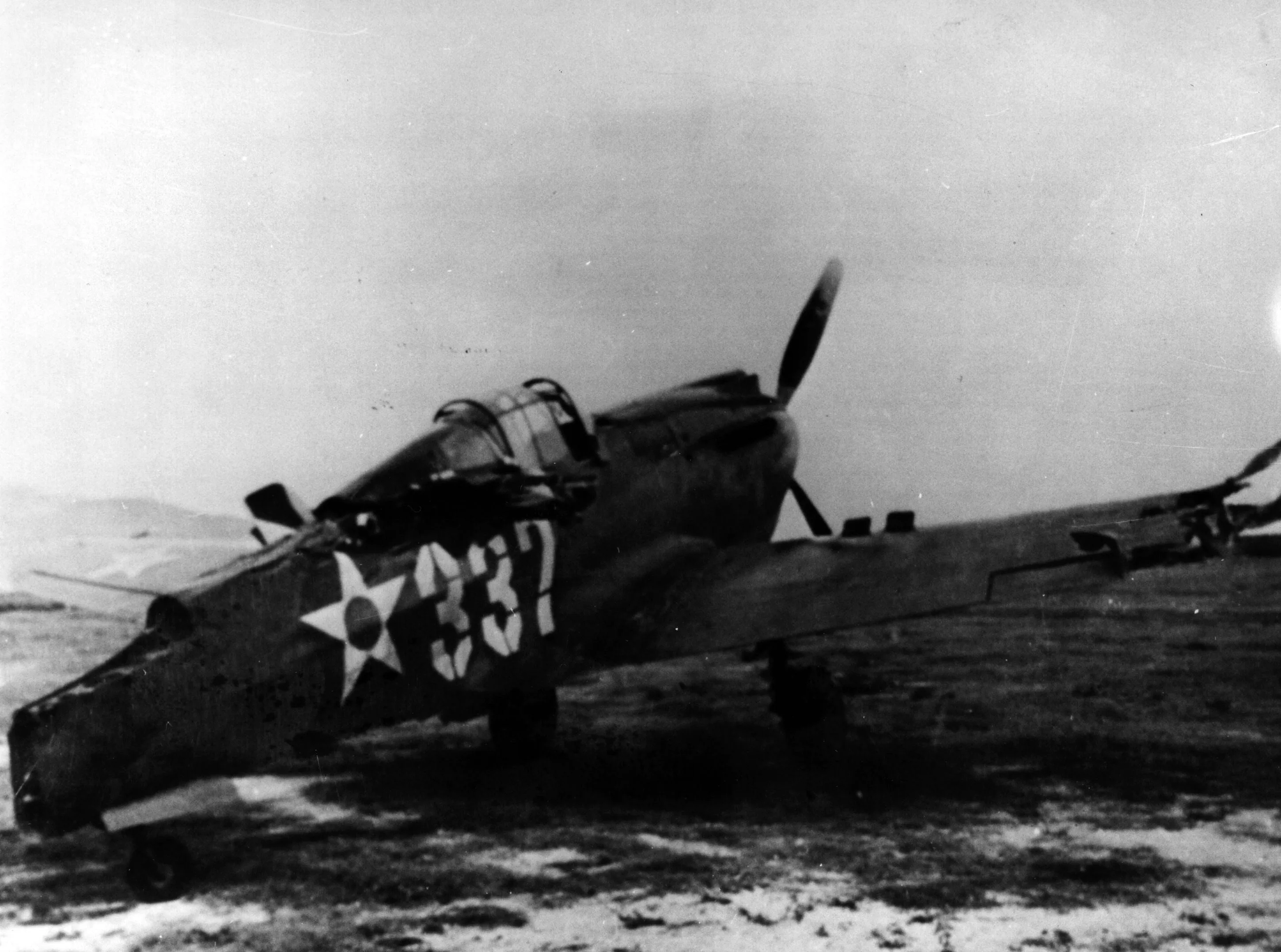 7th December 1941: Following the surprise attack by the Japanese on Pearl Harbour (Pearl Harbor) this US Army P40 pursuit plane was machine gunned on the ground at Bellows Field by the enemy. (Photo by Keystone/Getty Images)