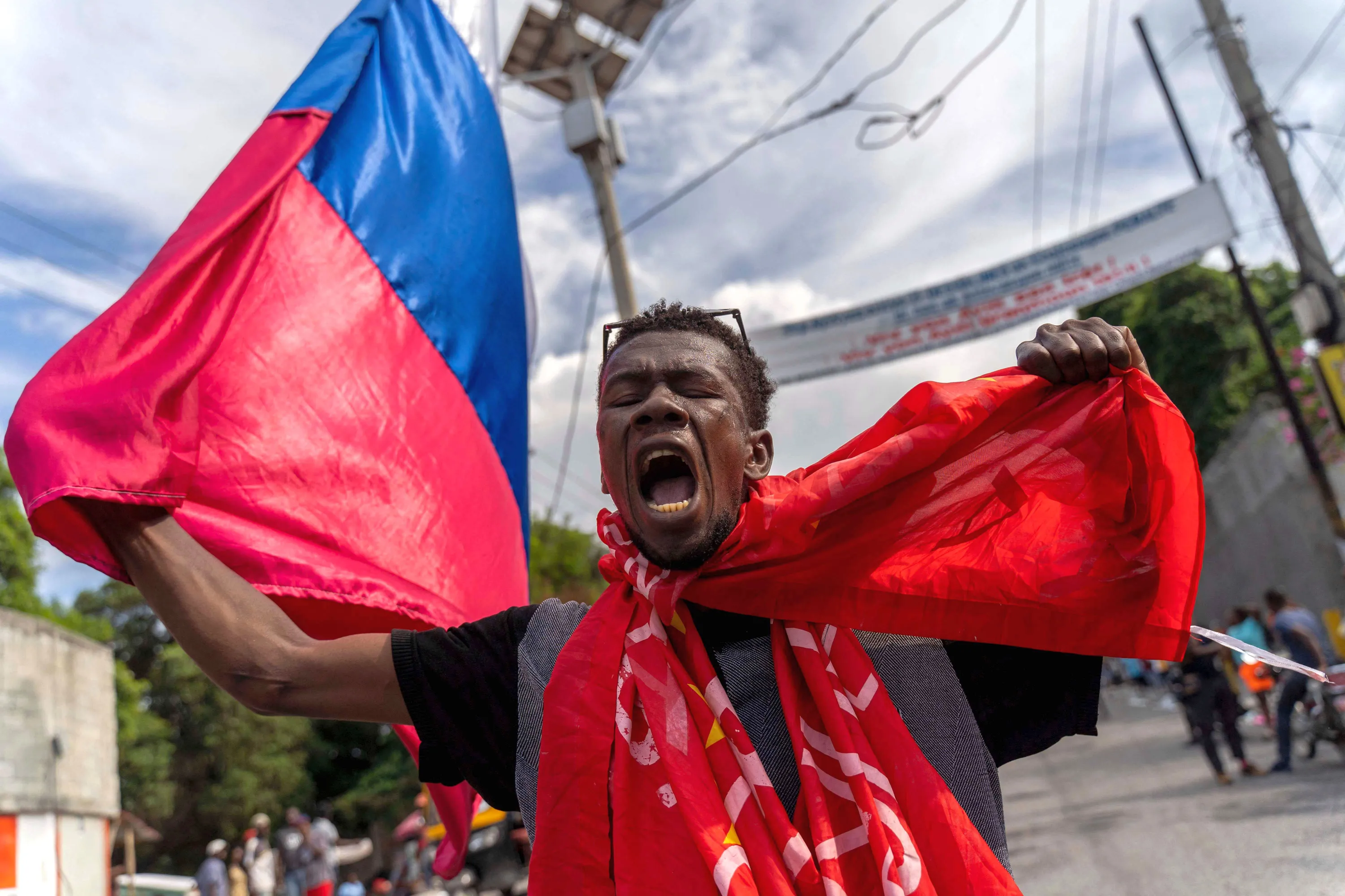 People protest during a demonstration amid a health and security crisis in Port-au-Prince on October 21, 2022. The UN Security Council on October 21, 2022 agreed unanimously on a sanctions regime targeting the gangs terrorizing the population in Haiti – including an asset freeze on a powerful gang leader. The Council has been debating for two weeks how best to address a spiraling health and security crisis in the poorest country in the Americas, which is battling a fast-growing outbreak of cholera. (Photo by Richard Pierrin/AFP Photo)