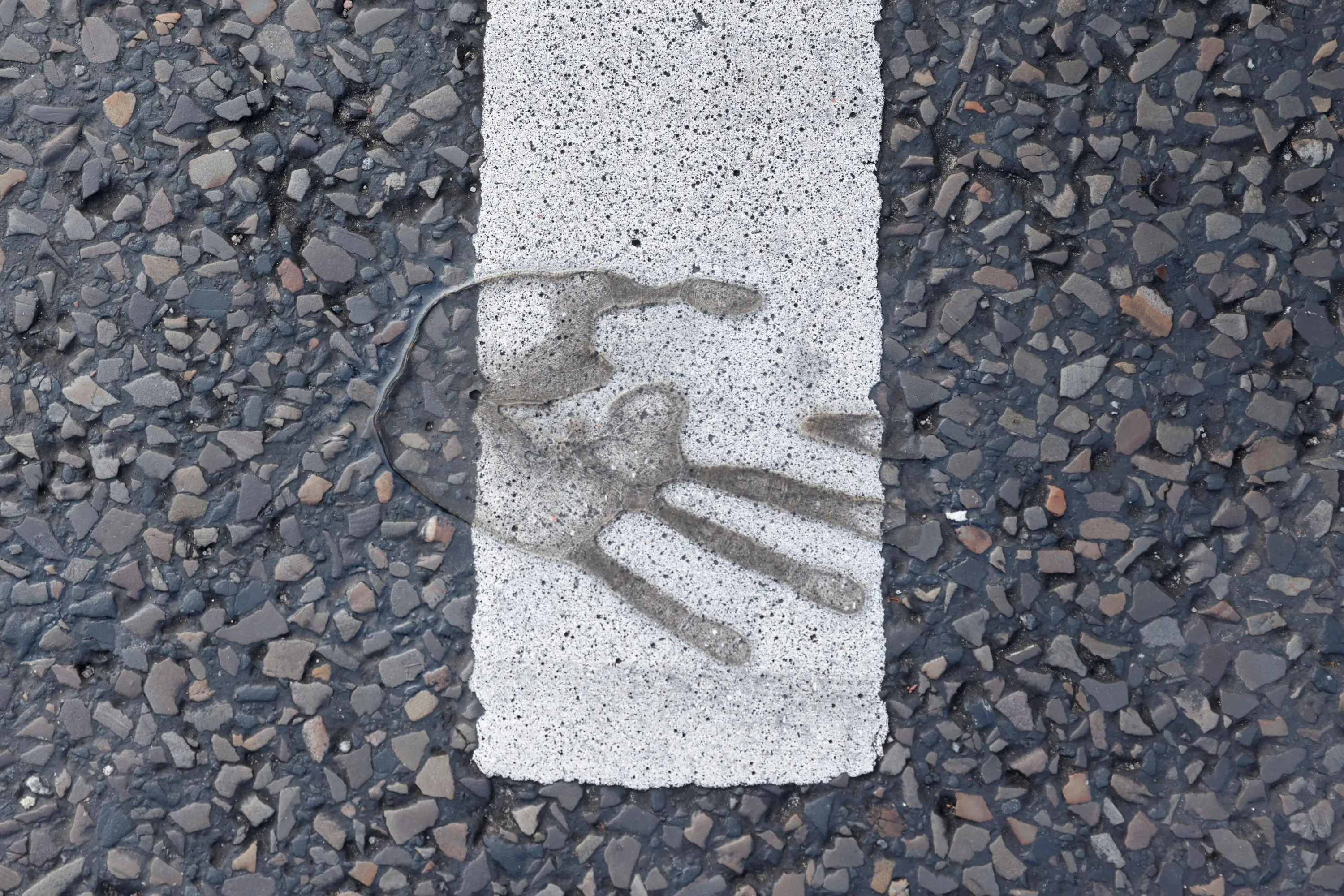 View of a handprint on the road after a climate activist's hand was unglued during a street blockade in Berlin, Germany on October 31, 2022. (Photo by Michele Tantussi/Reuters)