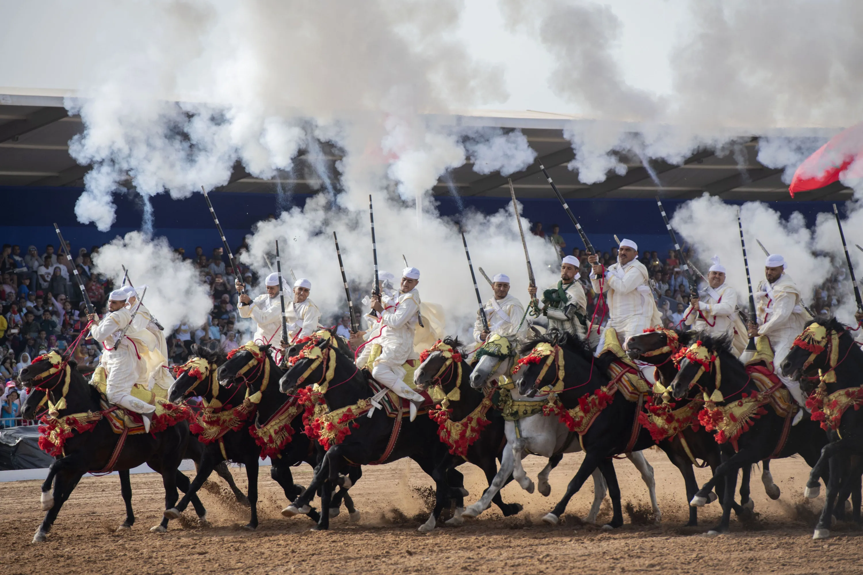 Horsemen charge and fire their rifles loaded with gunpowder during a national competition of “Tabourida”, a traditional horse riding show also known as 'Fantasia, salon du cheval d'El Jadida' (El Jadida International Horse Show), in El Jadida, Morocco, 21 October 2022. (Photo by Jalal Morchidi/EPA/EFE)