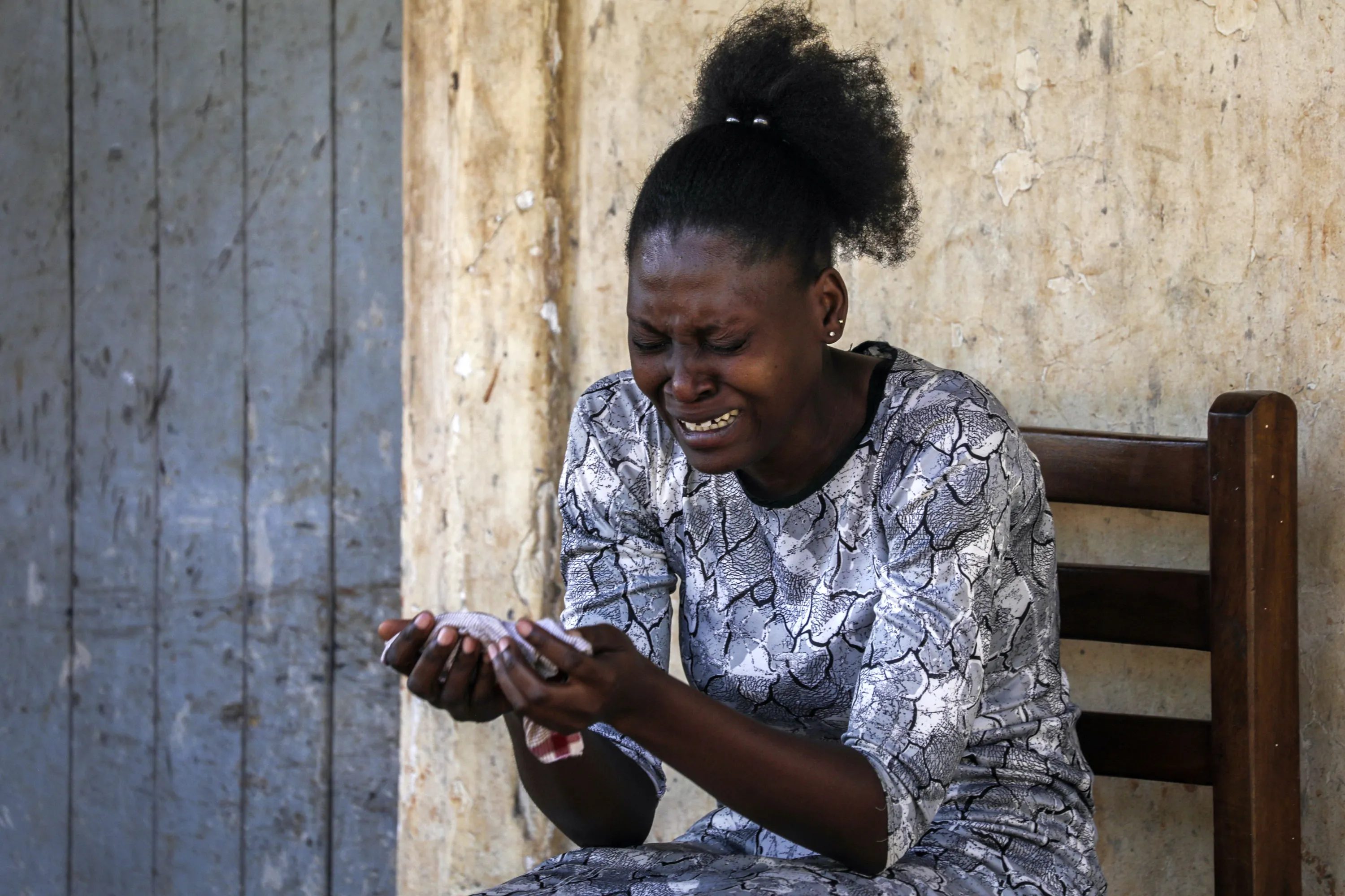 A mother of one of the children cries at the scene of a fire, at the Salama School for the Blind in Luga village, Mukono district, Uganda Tuesday, October 25, 2022. A police official says 11 people, including children, were killed in the fire at the boarding school in a rural community just outside the capital, Kampala, with six other people hospitalized in critical condition. (Photo by Hajarah Nalwadda/AP Photo)