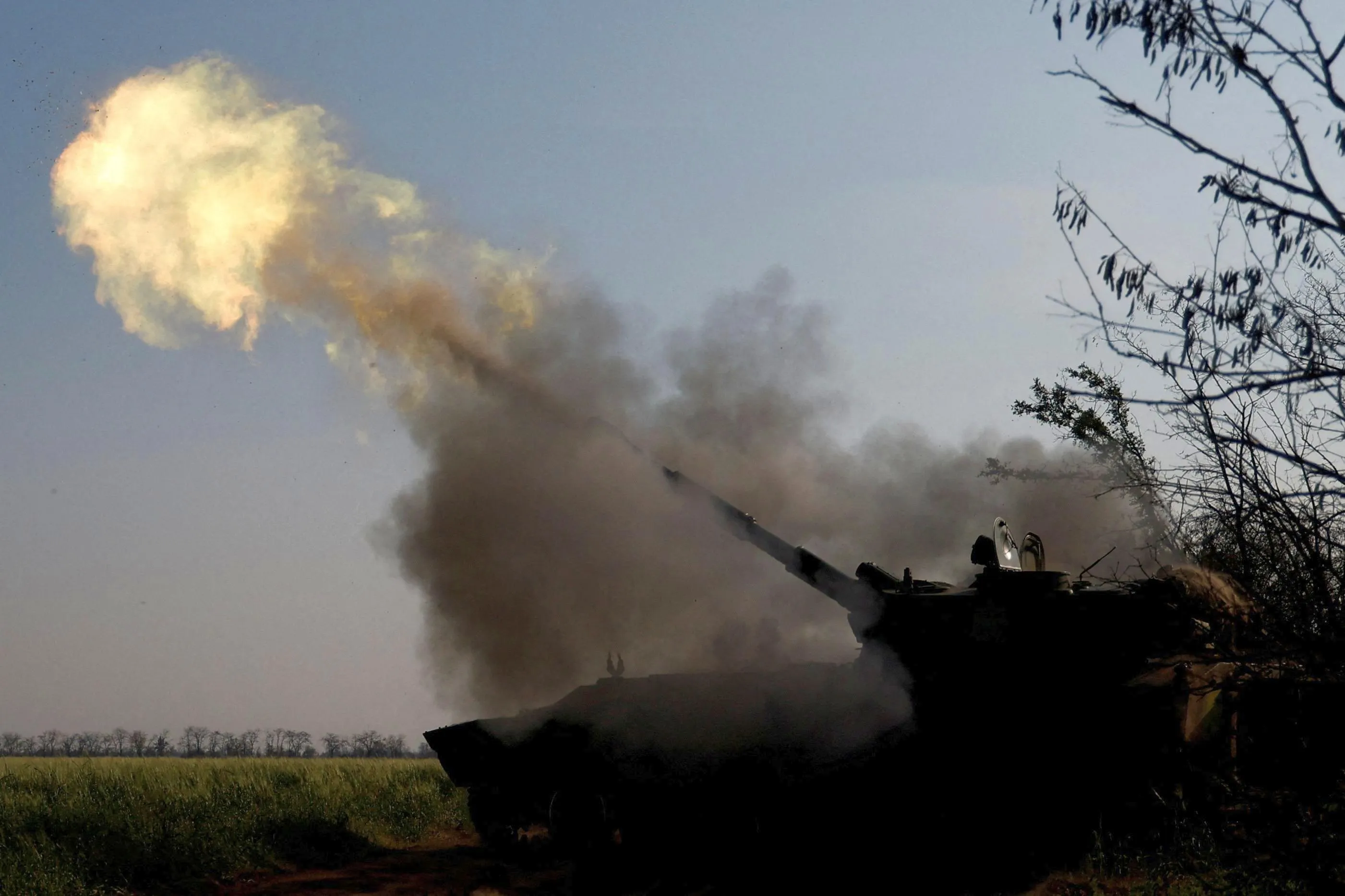 Ukrainian servicemen fire a self-propelled howitzer toward Russian positions, amid Russia's attack on Ukraine, on a frontline in Mykolaiv region, Ukraine on November 2, 2022. (Photo by Valentyn Ogirenko/Reuters)