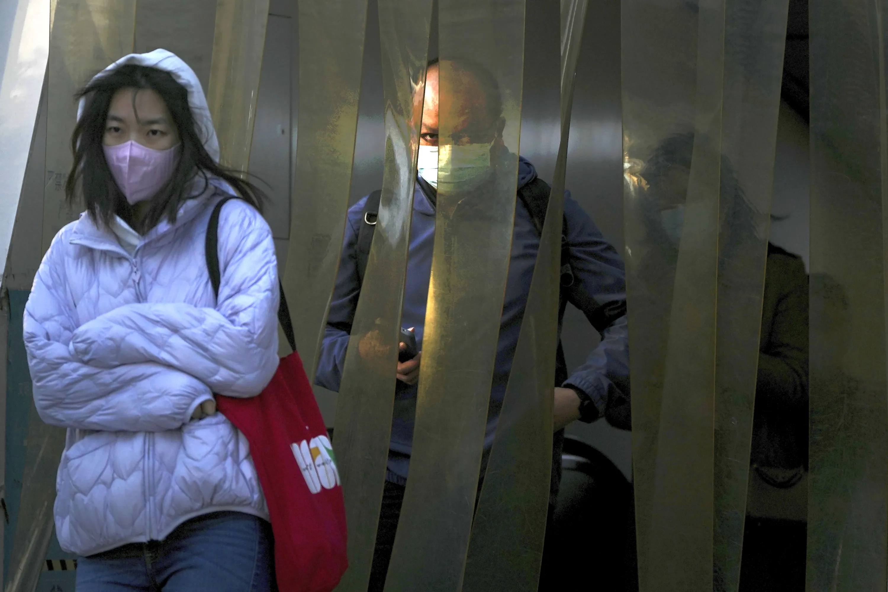 Commuters wearing face masks walk through the plastic curtain as they exit a subway station in Beijing, Monday, October 31, 2022. (Photo by Andy Wong/AP Photo)