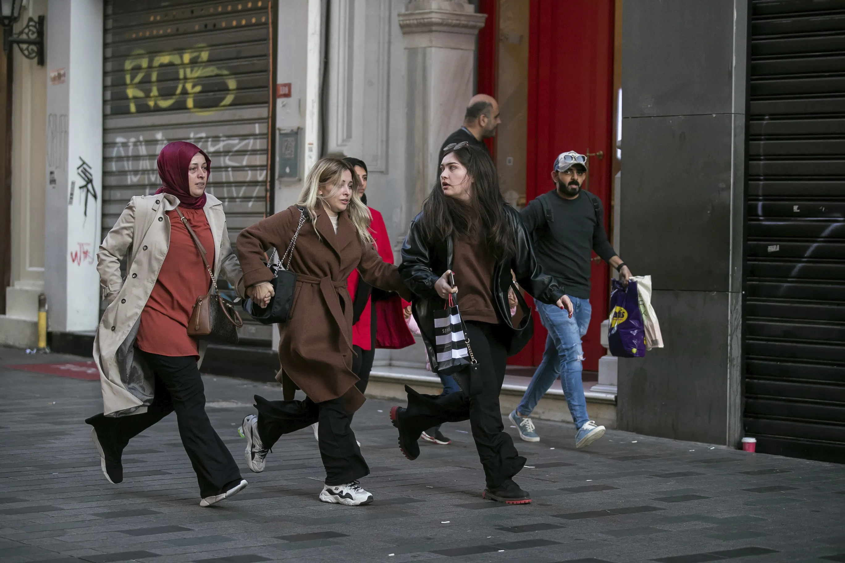 People leave the area after an explosion on Istanbul's popular pedestrian Istiklal Avenue Sunday, Istanbul, Sunday, November 13, 2022. A bomb exploded on a major pedestrian avenue in the heart of Istanbul on Sunday, killing six people, wounding dozens and sending people fleeing as flames rose. (Photo by Can Ozer/AP Photo)