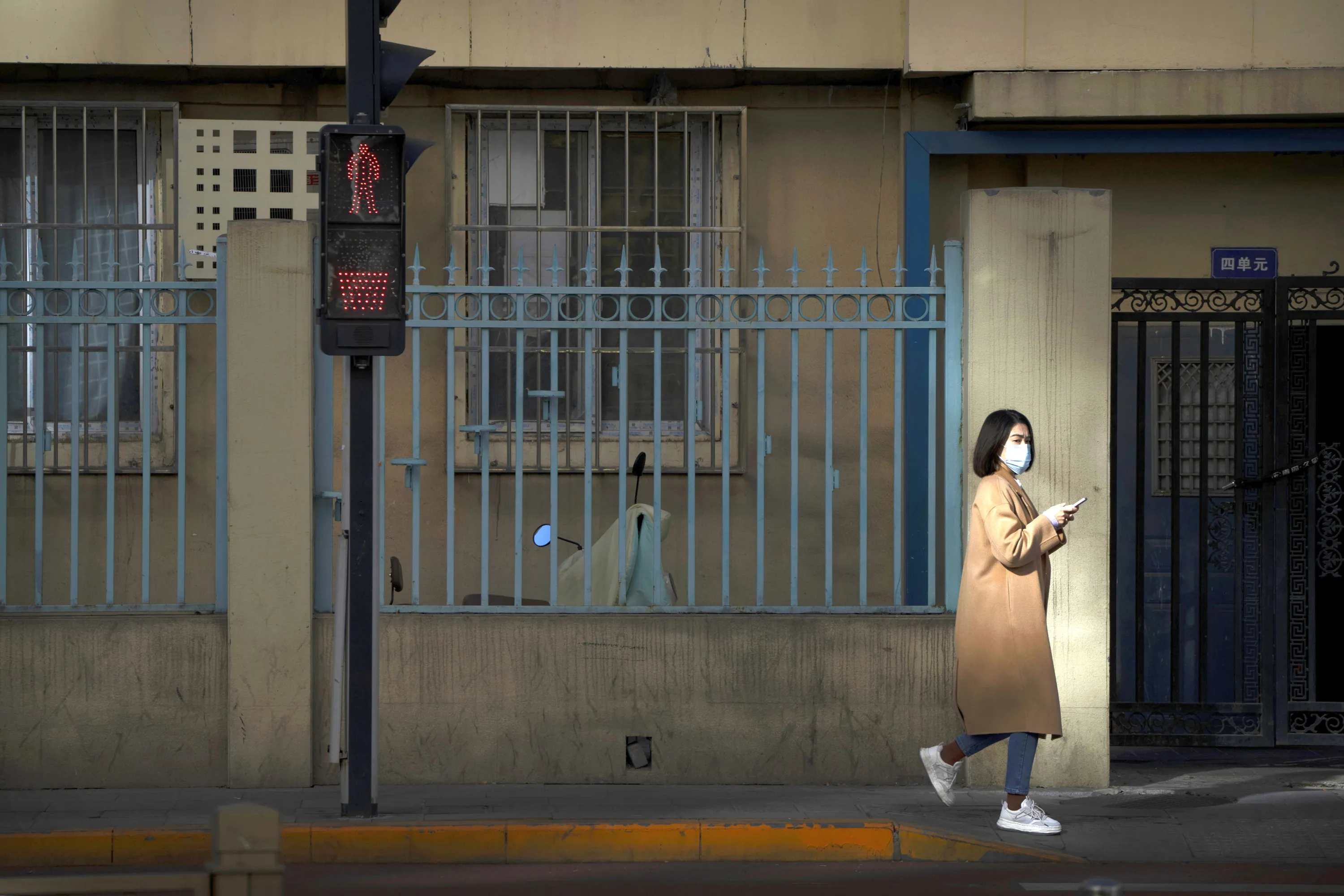 A woman wearing a face mask walks along a street in Beijing, Friday, November 4, 2022. (Photo by Mark Schiefelbein/AP Photo)