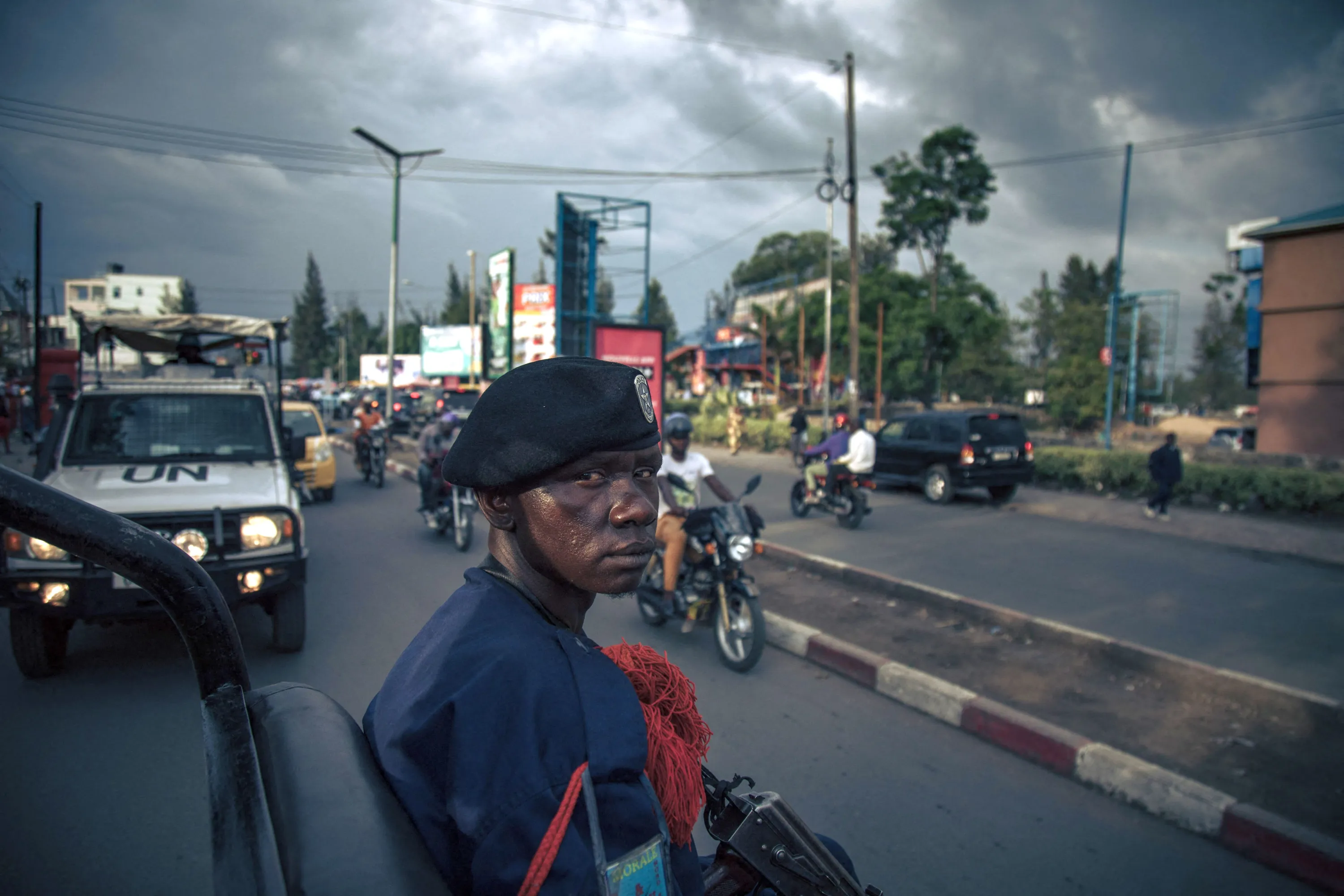 Senegalese peacekeepers with the United Nations Organization Stabilization Mission in the Democratic Republic of the Congo (MONUSCO) and Congolese police officers patrol the city of Goma, on November 9, 2022. Since October 20, fighting has resumed between the Congolese army and the M23 (March 23 Movement), allegedly backed by the Rwandan army. In the past two weeks, the M23 has doubled the size of the territory under its control, approaching 30 kilometers from Goma, the provincial capital of more than one million people that sits on the border with Rwanda. (Photo by Alexis Huguet/AFP Photo)