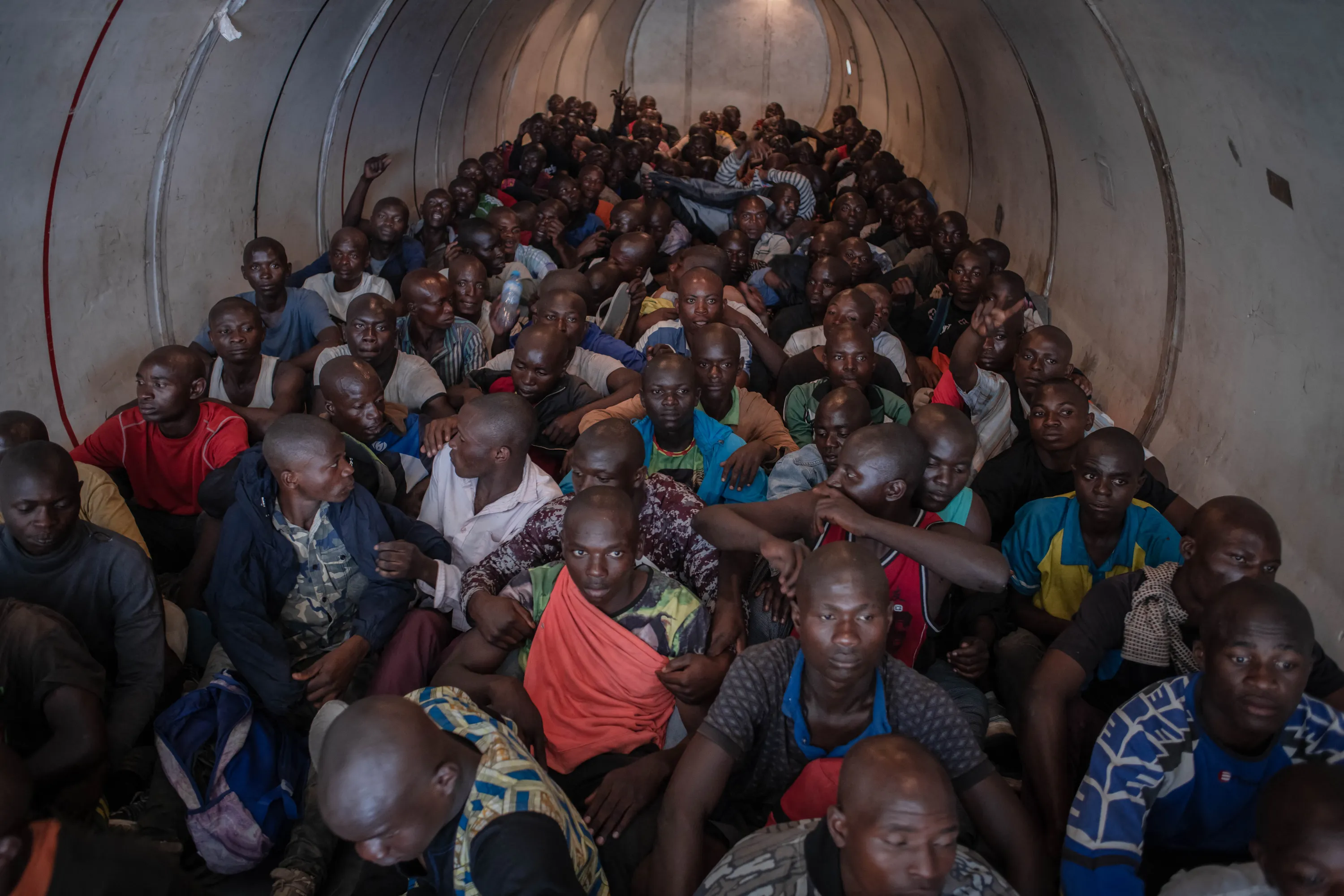 Hundreds of volunteers sit on a plane bound for a training center after answering Democratic Republic of Congo's President Felix Tshisekedi's call to join the army to go to the front lines to fight against the M23 rebellion (March 23 Movement) in Goma, Democratic Republic of Congo, on November 14, 2022. (Photo by Guerchom Ndebo/AFP Photo)
