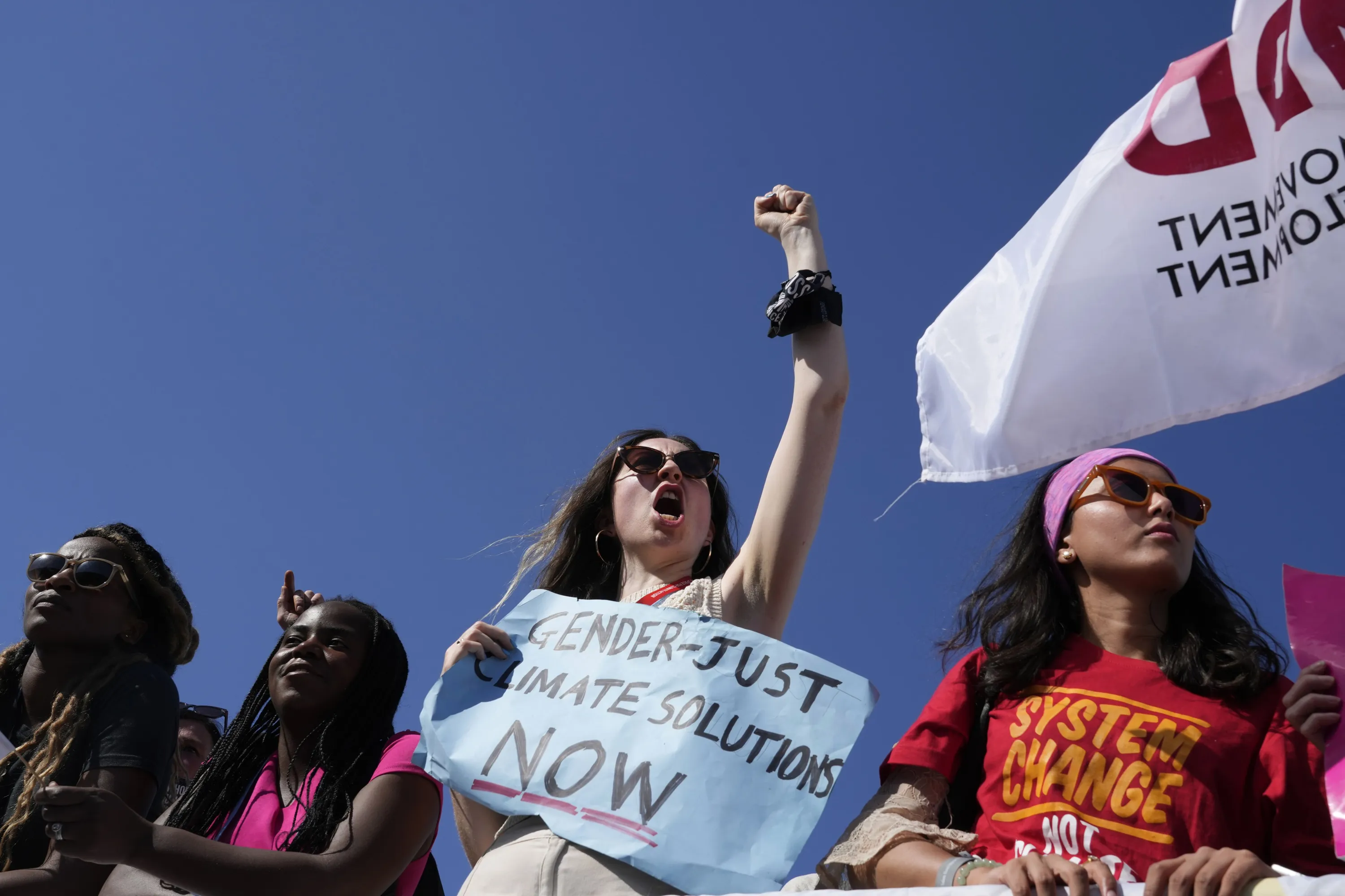 Demonstrators participate in a protest at the COP27 U.N. Climate Summit, Saturday, November 12, 2022, in Sharm el-Sheikh, Egypt. (Photo by Peter Dejong/AP Photo)