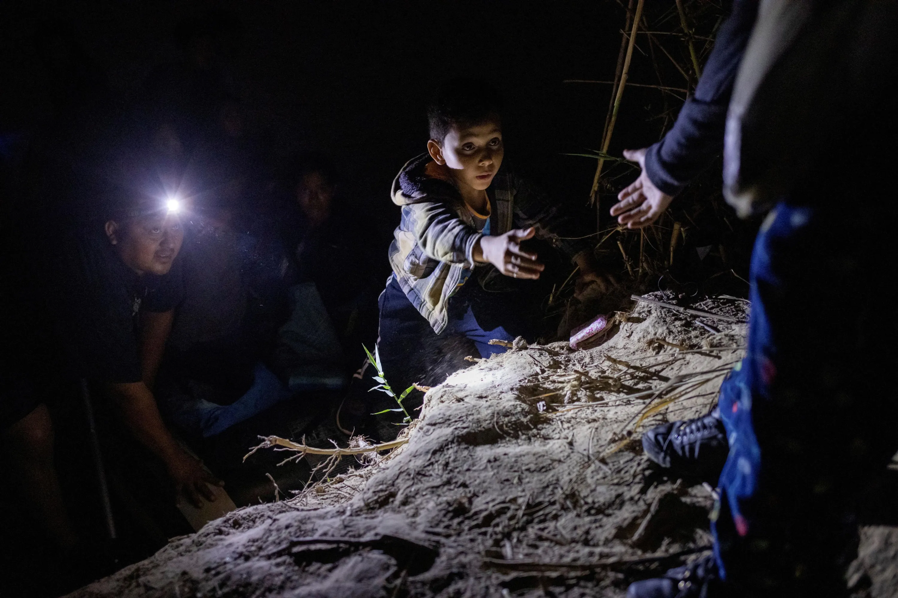 Ryan, a 10 year old youth migrant traveling without an adult, is helped onto the bank being smuggled across the Rio Grande river from Mexico into Roma, Texas, U.S., November 11, 2022. (Photo by Adrees Latif/Reuters)