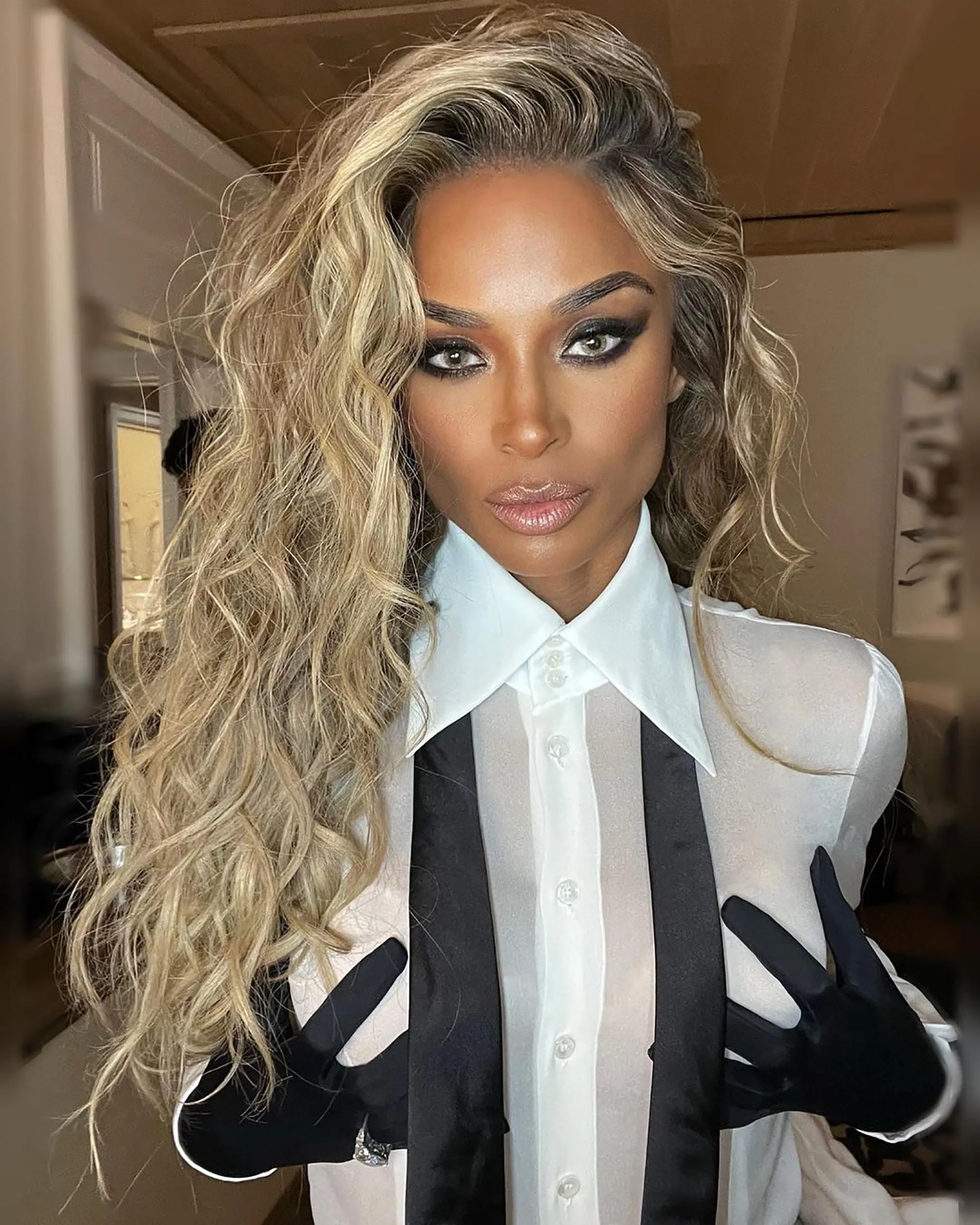American singer-songwriter, actress and model Ciara in the second decade of November 2022 grabs her breasts in a smoldering selfie. (Photo by ciara/Instagram)