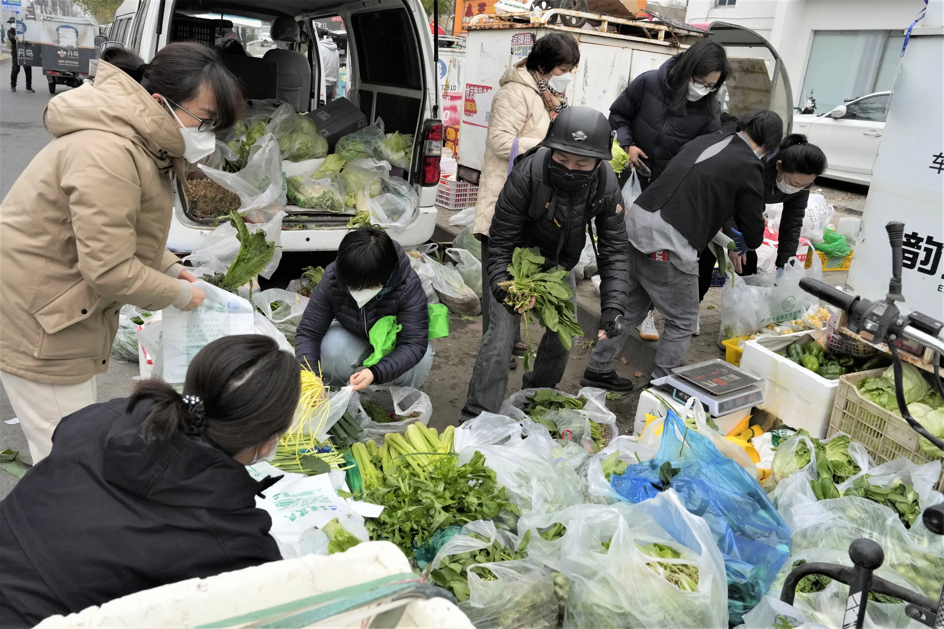 Residents buy fresh vegetables from street vendors as restaurants are closed in some districts and general movement discouraged in Beijing, Thursday, November 24, 2022. China is expanding lockdowns, including in a cental city where factory workers clashed this week with police, as its number of COVID-19 cases hit a daily record. (Photo by Ng Han Guan/AP Photo)