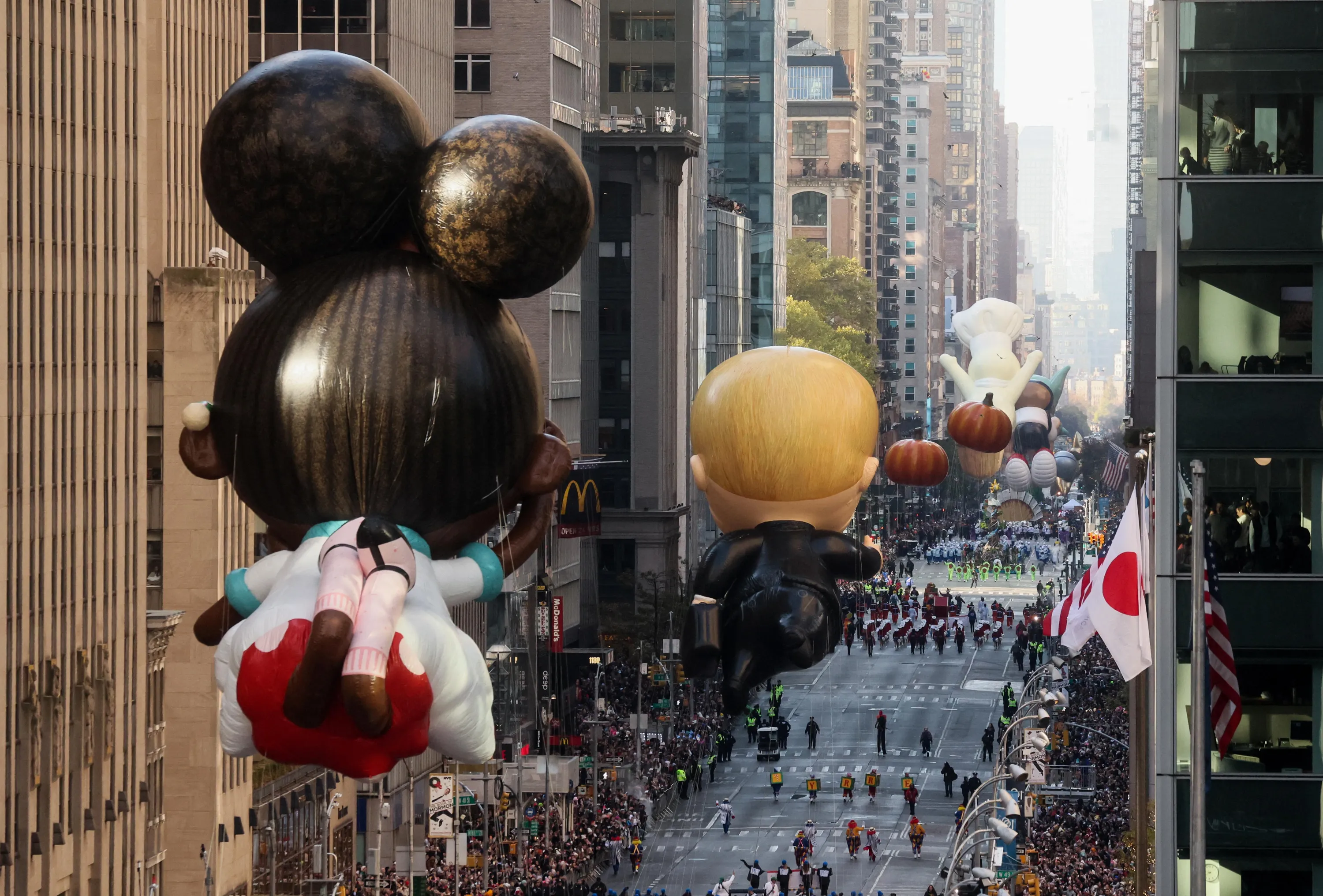 Ada Twist, Scientist, Boss Baby and Pumpkins balloons are seen during the 96th Macy's Thanksgiving Day Parade in Manhattan, New York City, U.S., November 24, 2022. (Photo by Brendan McDermid/Reuters)
