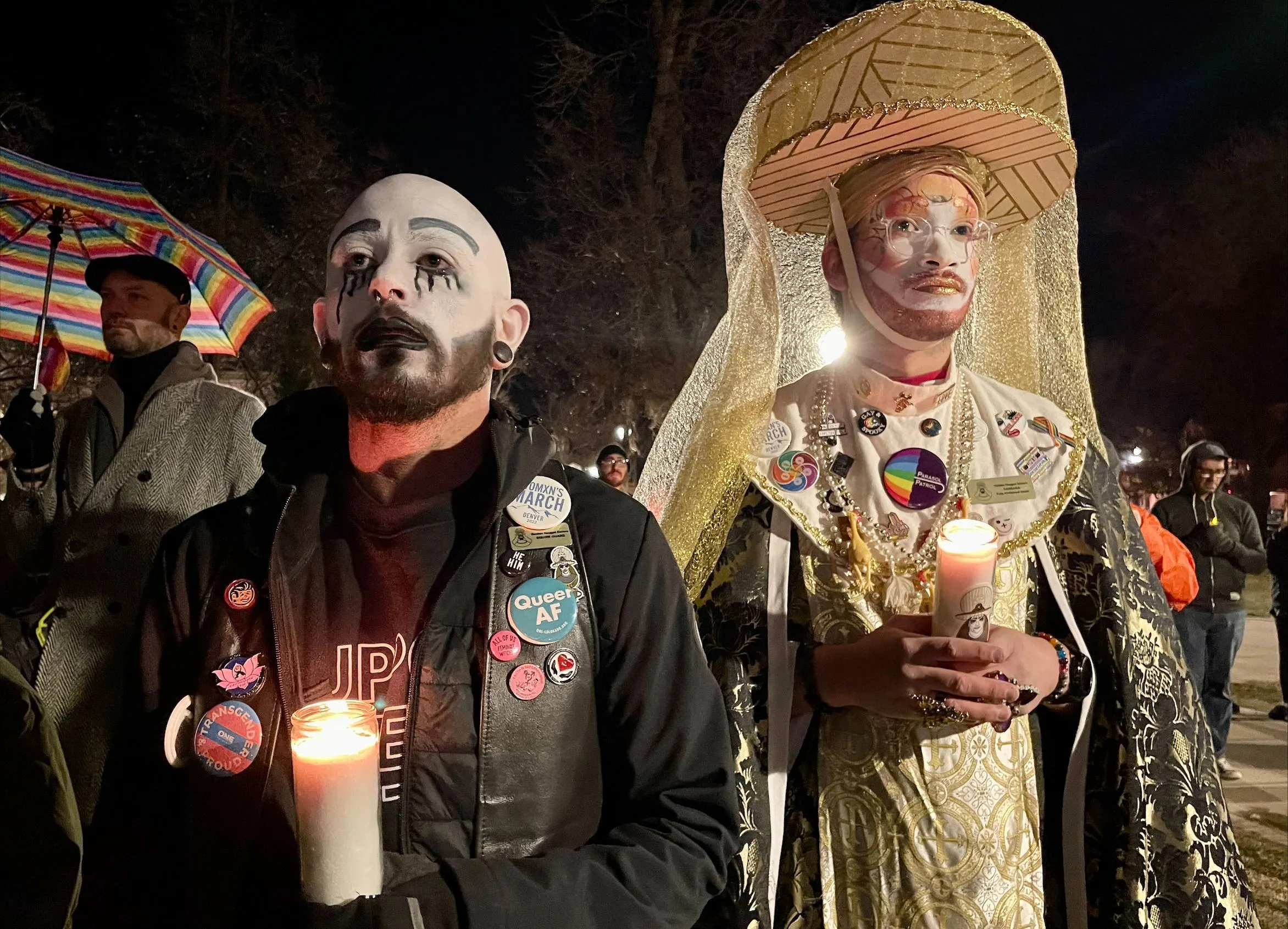 People hold candles during a vigil at Acacia Park for the victims of a mass shooting at Club Q, an LGBTQ nightclub, at Acacia Park in Colorado Springs, Colorado, on November 21, 2022. Anderson Lee Aldrich, 22, was arrested following the November 19 shooting at Club Q in Colorado Springs that left five people dead and at least 18 injured, officials said. (Photo by Cecilia Sanchez/AFP Photo)