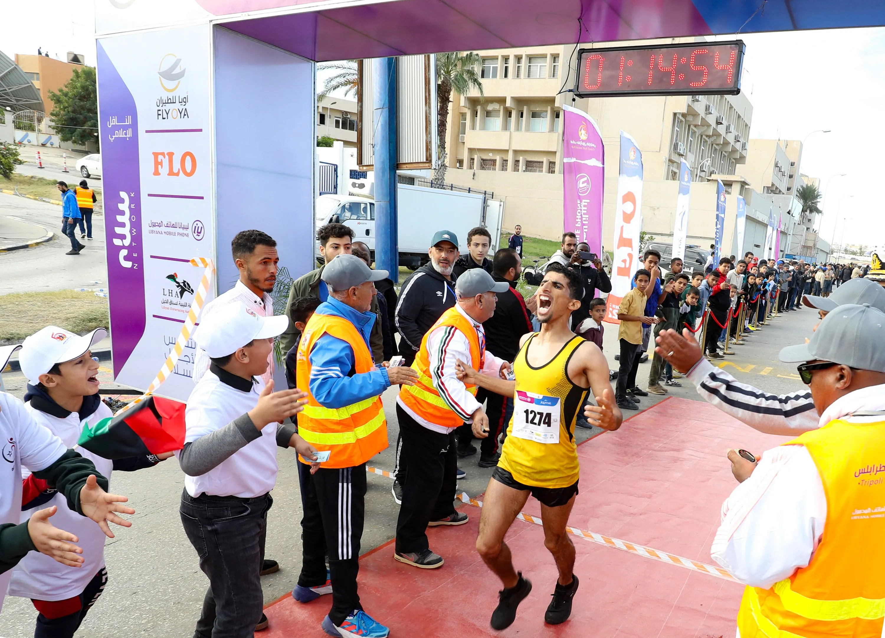 People cheer a runner at the finish line during the Tripoli marathon, in the Libyan capital on November 26, 2022. (Photo by Mahmud Turkia/AFP Photo)
