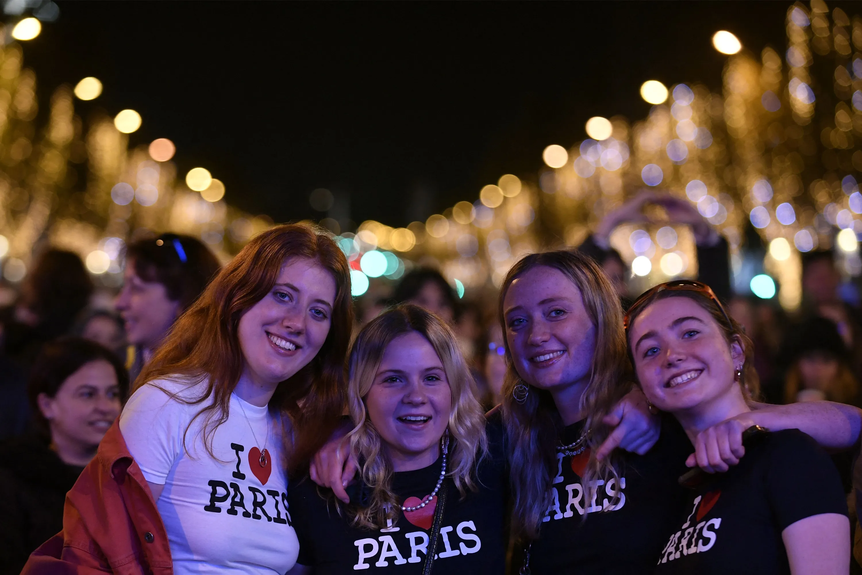 People attend the inauguration of the Christmas decorations on the Champs-Elysees avenue in Paris on November 20, 2022. (Photo by Julien de Rosa/AFP Photo)