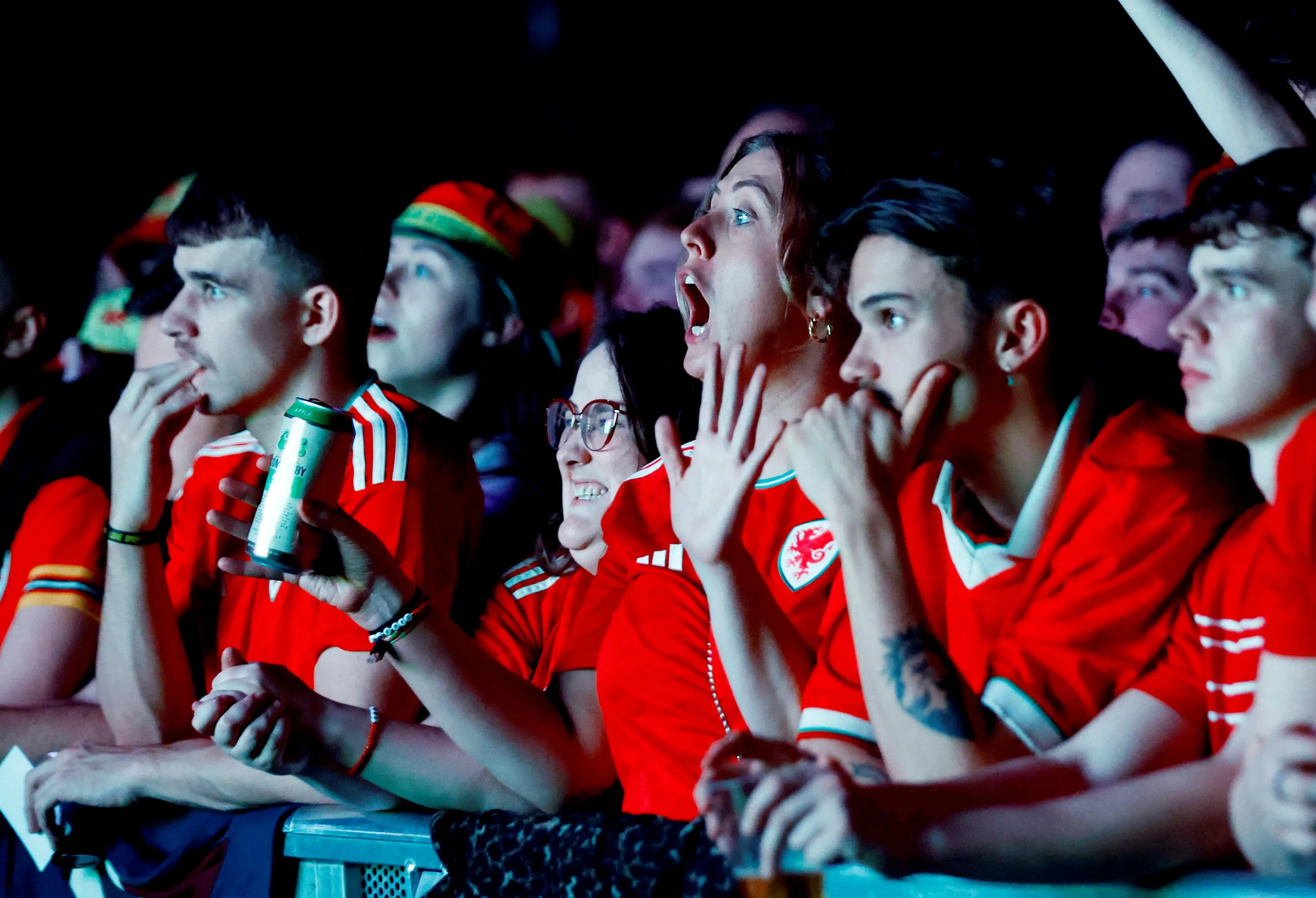 England and Wales fans at the 4TheFans Fan Park at The Tramshed, Cardiff, during a screening of the FIFA World Cup Group B match between Wales and England on Tuesday, November 29, 2022. (Photo by Andrew Boyers/Reuters)