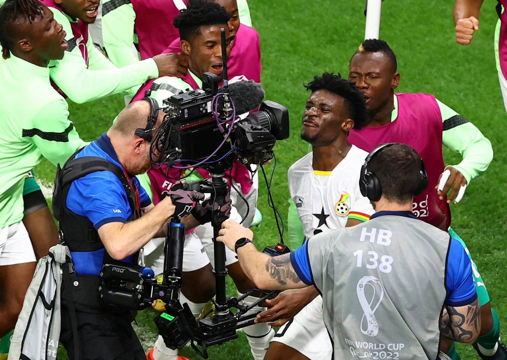 Mohammed Kudus (20) of Ghana celebrates his team's third goal with teammates during the FIFA World Cup Qatar 2022 Group H match between South Korea vs Ghana at Education City Stadium in Al Rayyan, Qatar on November 28, 2022. (Photo by Matthew Childs/Reuters)