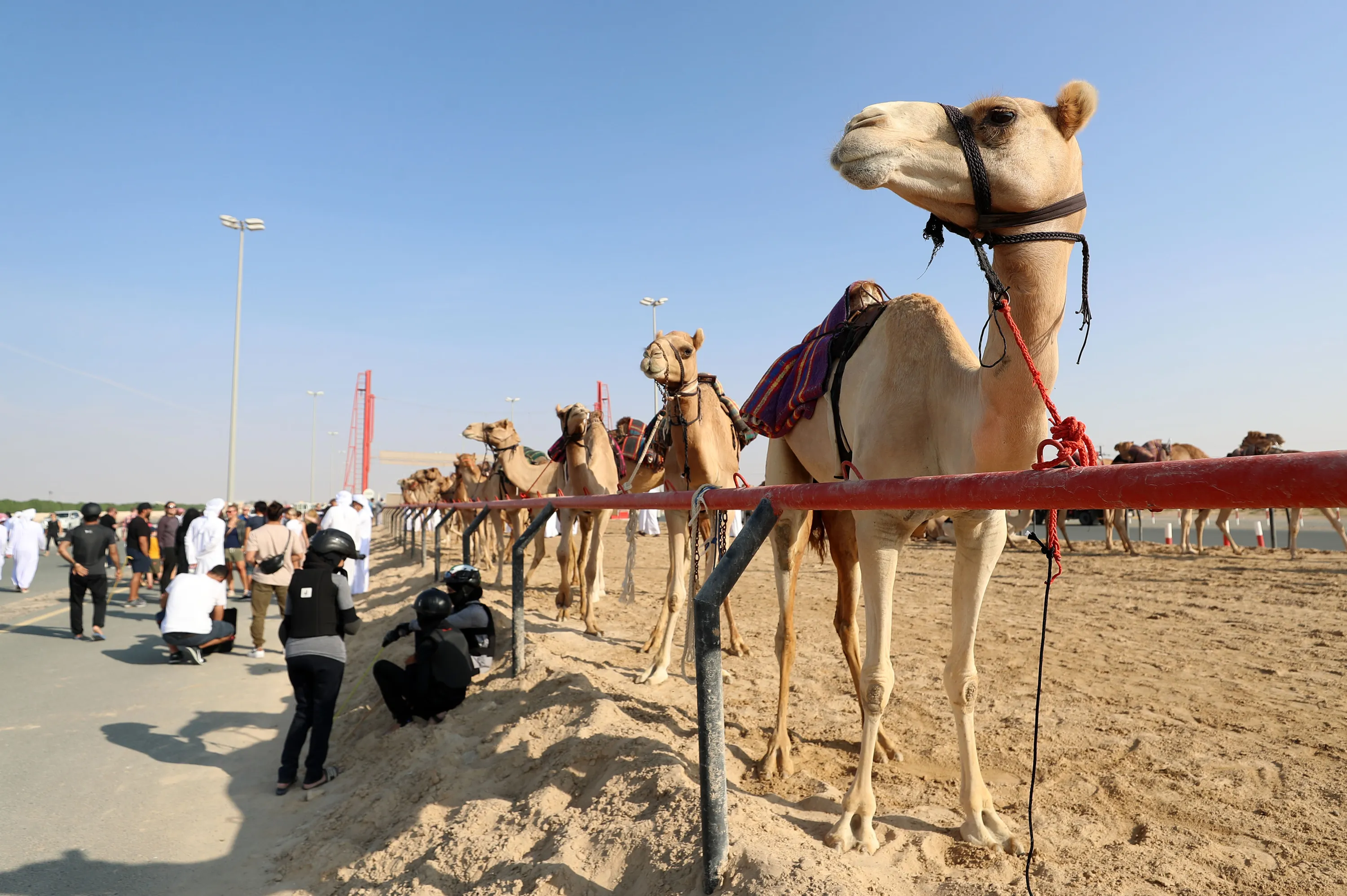 The 1st preliminary race for the camel trek marathon for expats at Al Marmoon race track in Dubai and covered a distance of 1500 meters on November 4, 2022. (Photo by Chris Whiteoak/The National)