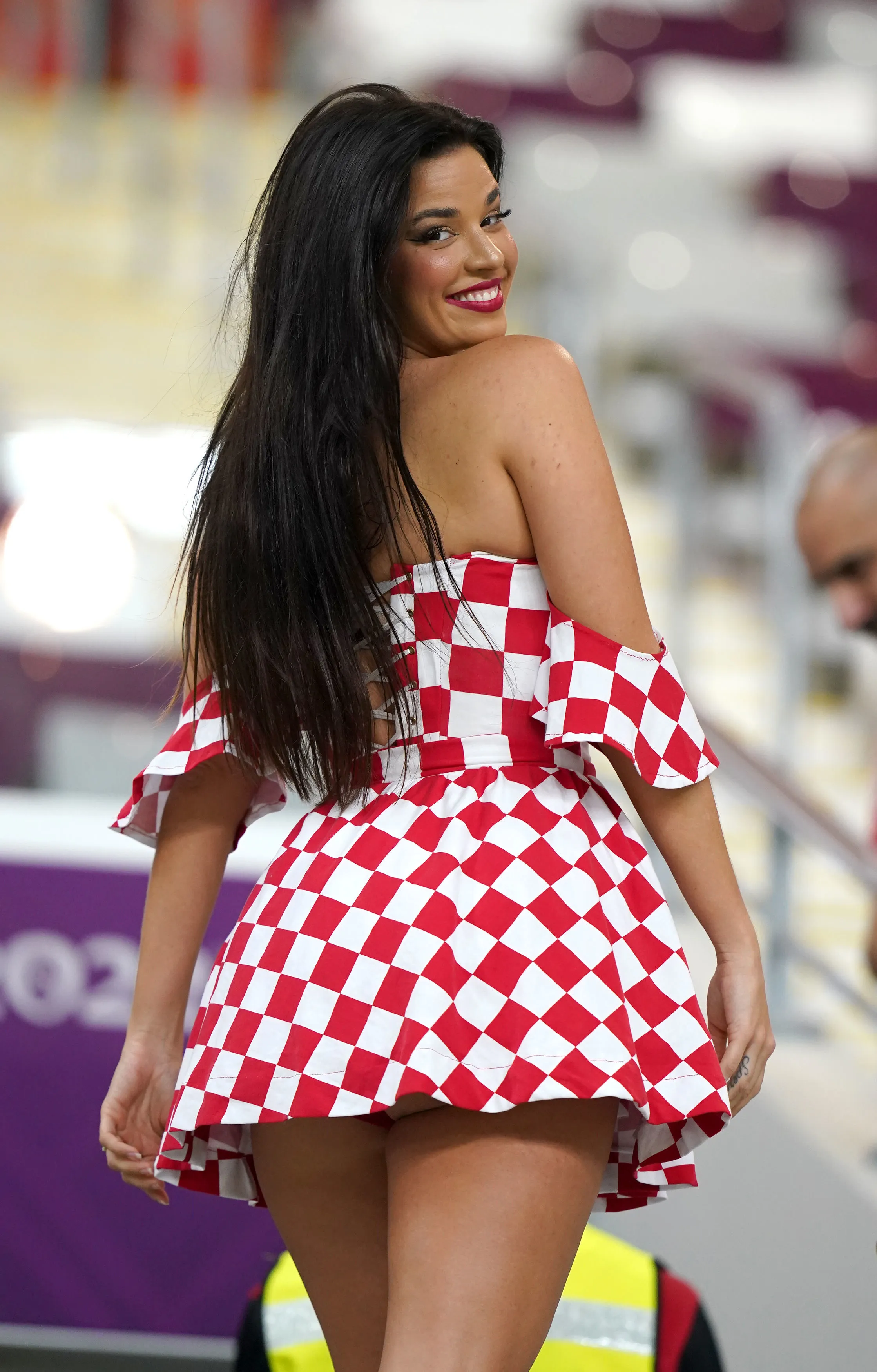 Ivana Knoll, Croatia fan and model who has been pushing the modesty dress code of Qatar and causing a stir online is seen in the stands before the FIFA World Cup Group F match at the Khalifa International Stadium, Doha, Qatar on Sunday, November 27, 2022. (Photo by Davy/PA Wire Press Association)