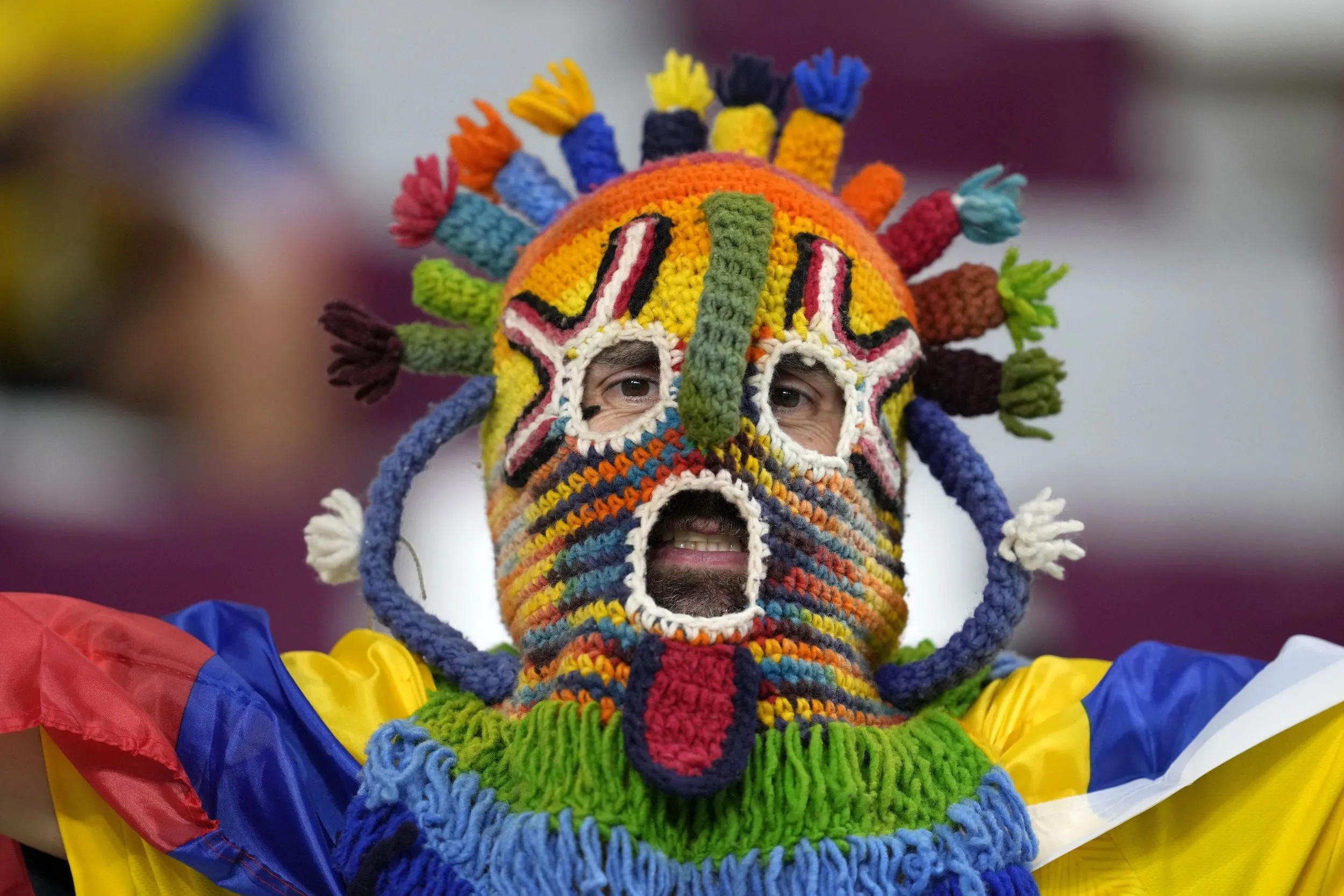An Ecuador's fan waits for the start of the World Cup group A soccer match between Ecuador and Senegal, at the Khalifa International Stadium in Doha, Qatar, Tuesday, November 29, 2022. (Photo by Darko Vojinovic/AP Photo)