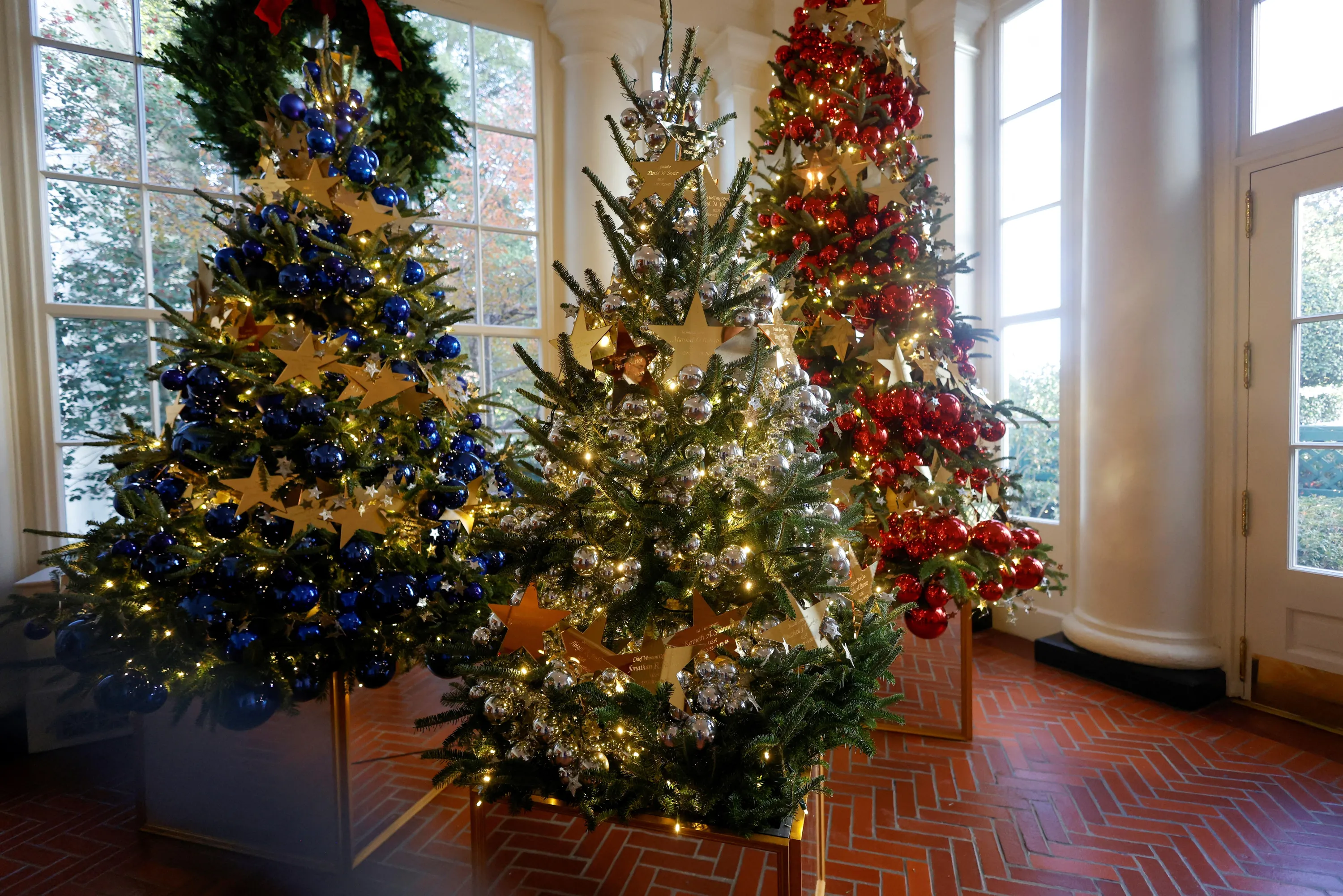 Gold Star trees honor fallen U.S. military service members as Christmas decorations on the theme “We the People” are unveiled during a press tour ahead of holiday receptions by U.S. President Joe Biden and first lady Jill Biden, at the White House in Washington, D.C., U.S. November 28, 2022. (Photo by Jonathan Ernst/Reuters)