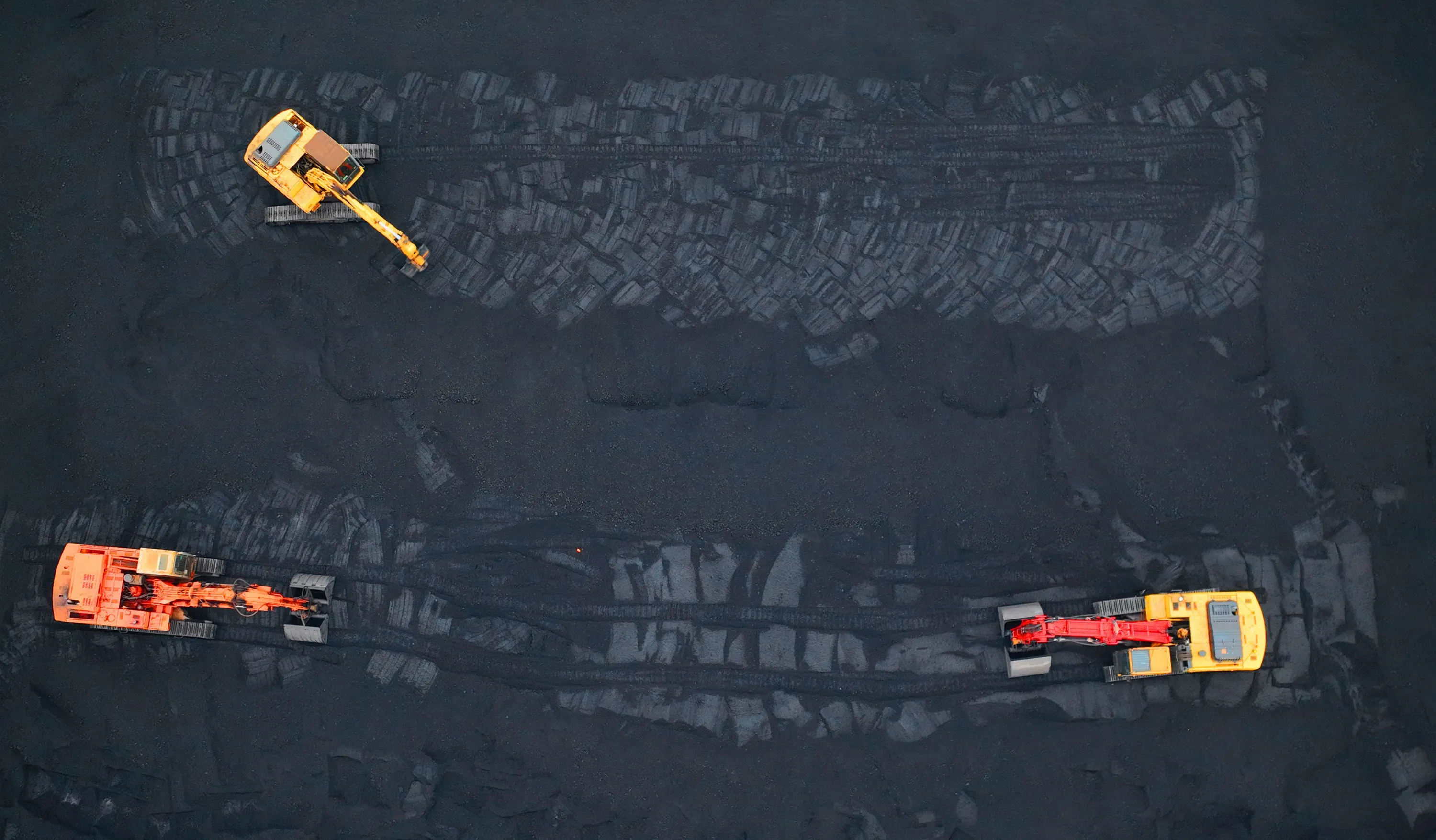 This aerial photo taken on November 28, 2022 shows excavators transferring coal at a port in Lianyungang, in China's eastern Jiangsu province. (Photo by Reuters/China Stringer Network)