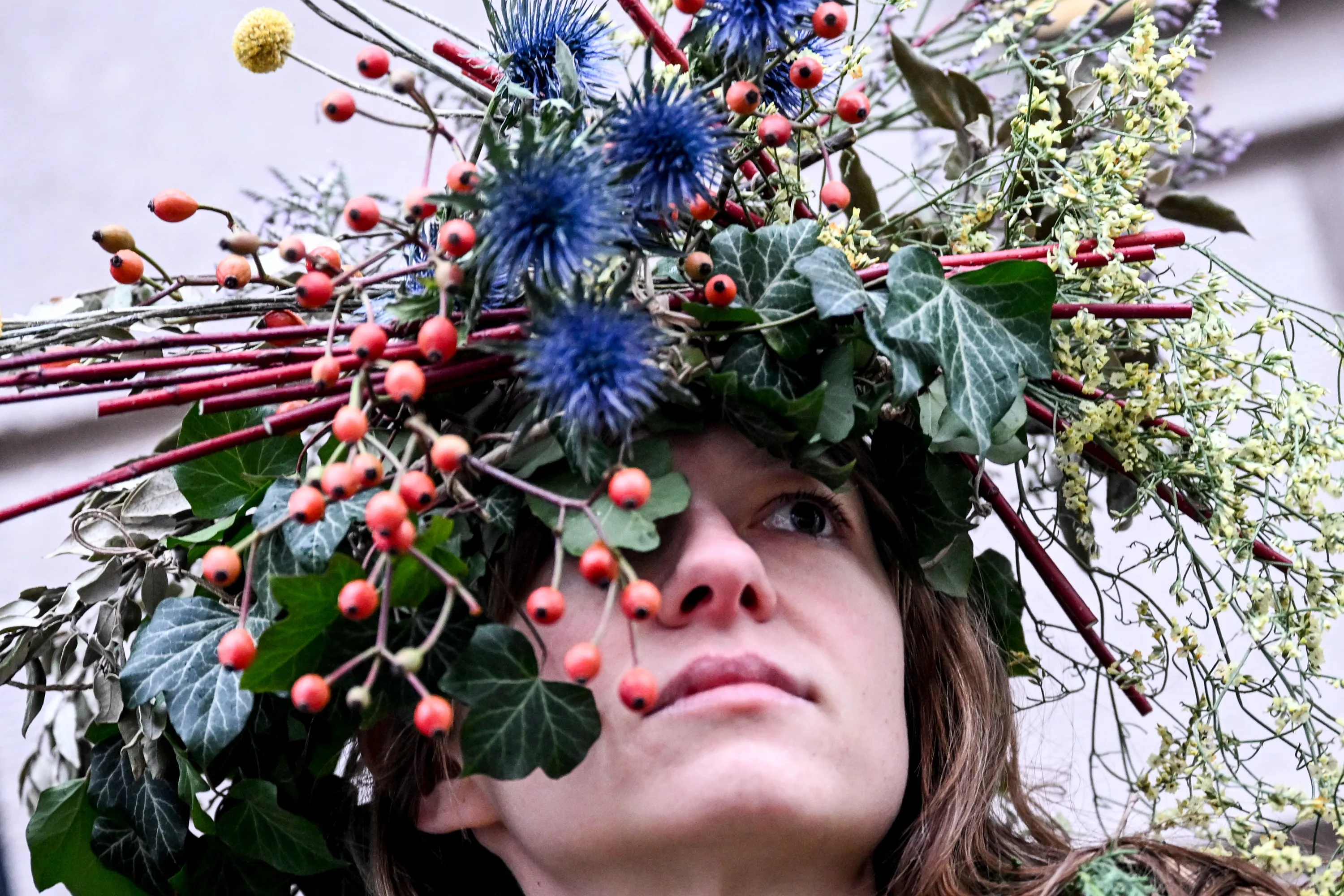 An activist of Extinction Rebellion wearing dress made of ivy, ferns and flowers, symbolizing the world's biodiversity attends protest under the motto “Biodiversity ensures our survival – act now”, in front of Germany Ministry of Environment in Berlin, Germany, 05 December 2022. Protest take place on the occasion of the UN Biodiversity Conference, which will take place from 5 – 17 December 2022 in Montreal, Canada. (Photo by Filip Singer/EPA/EFE/Rex Features/Shutterstock)