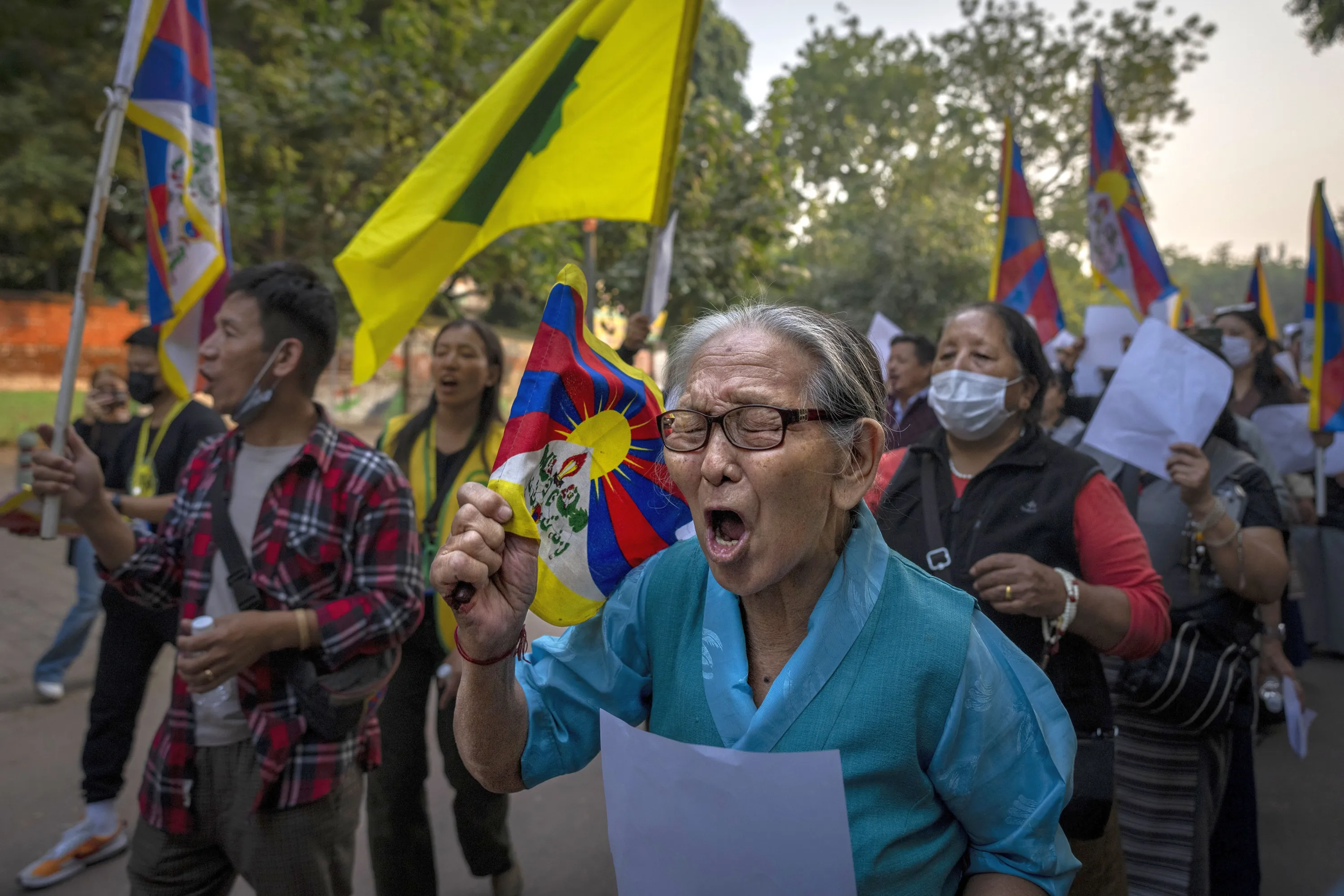 Exile Tibetan activists hold blank white papers symbolizing government censorship in China, while shouting anti-China slogans during a protest in New Delhi, India, Friday, December 2, 2022. The protest was in solidarity with the on-going “White Paper” protests against Chinese government's continued zero-COVID policies. (Photo by Altaf Qadri/AP Photo)