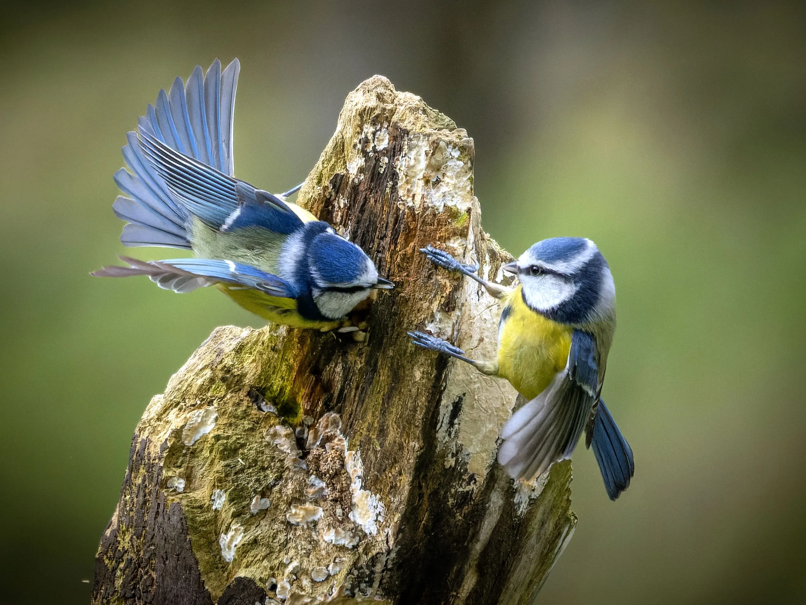 Blue tits argue in Shropshire, United Kingdom in the second decade of November 2022. (Photo by Martin Goff/Media Drum Images)