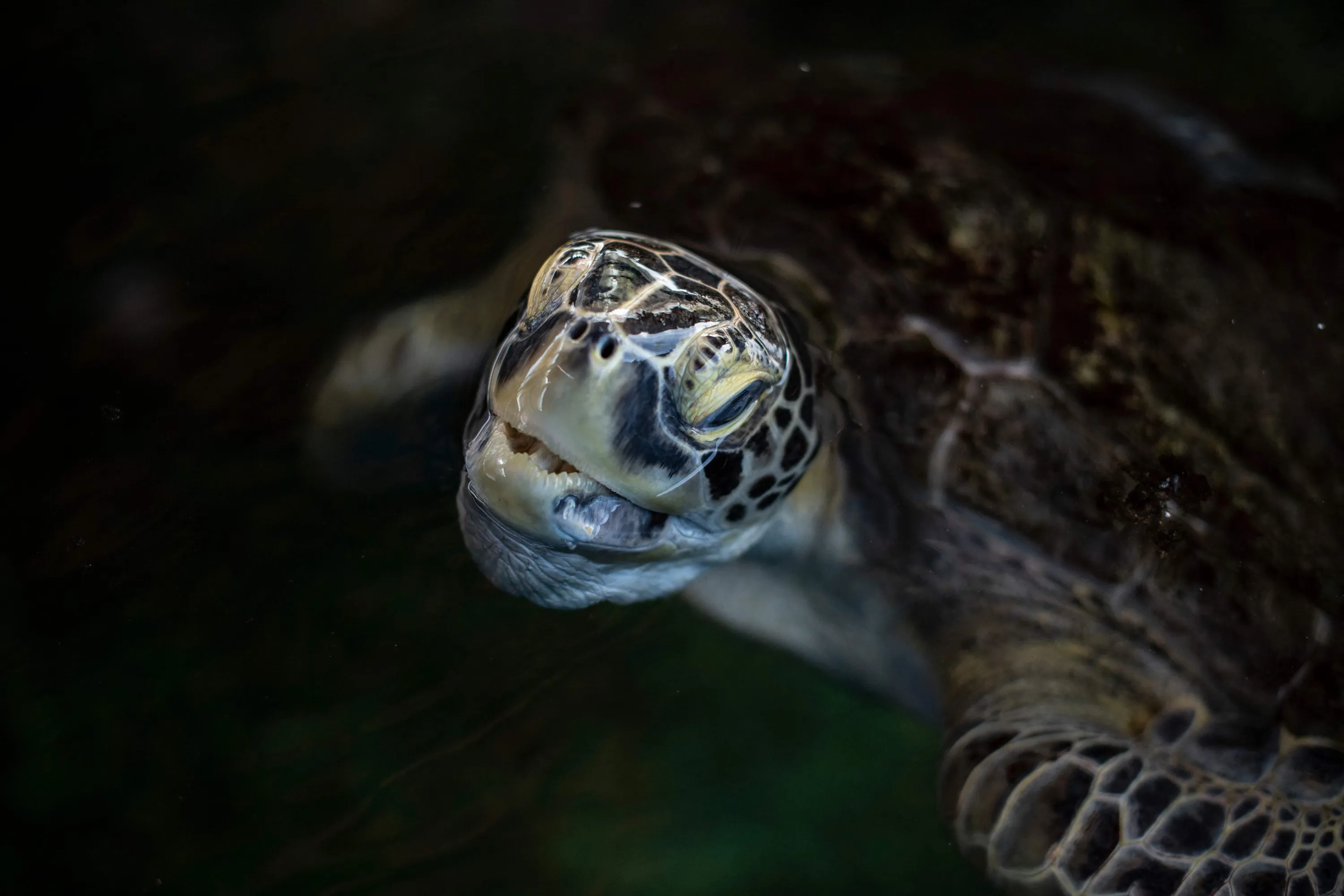 A Kemp's ridley sea turtle (Lepidochelys kempii) comes out to breathe while staying in a pond at the Submarine Museum after being rescued from a fishing net where it lost a flipper in Isla de Margarita, Nueva Esparta state, Venezuela, on November 24, 2022. (Photo by Yuri Cortez/AFP Photo)