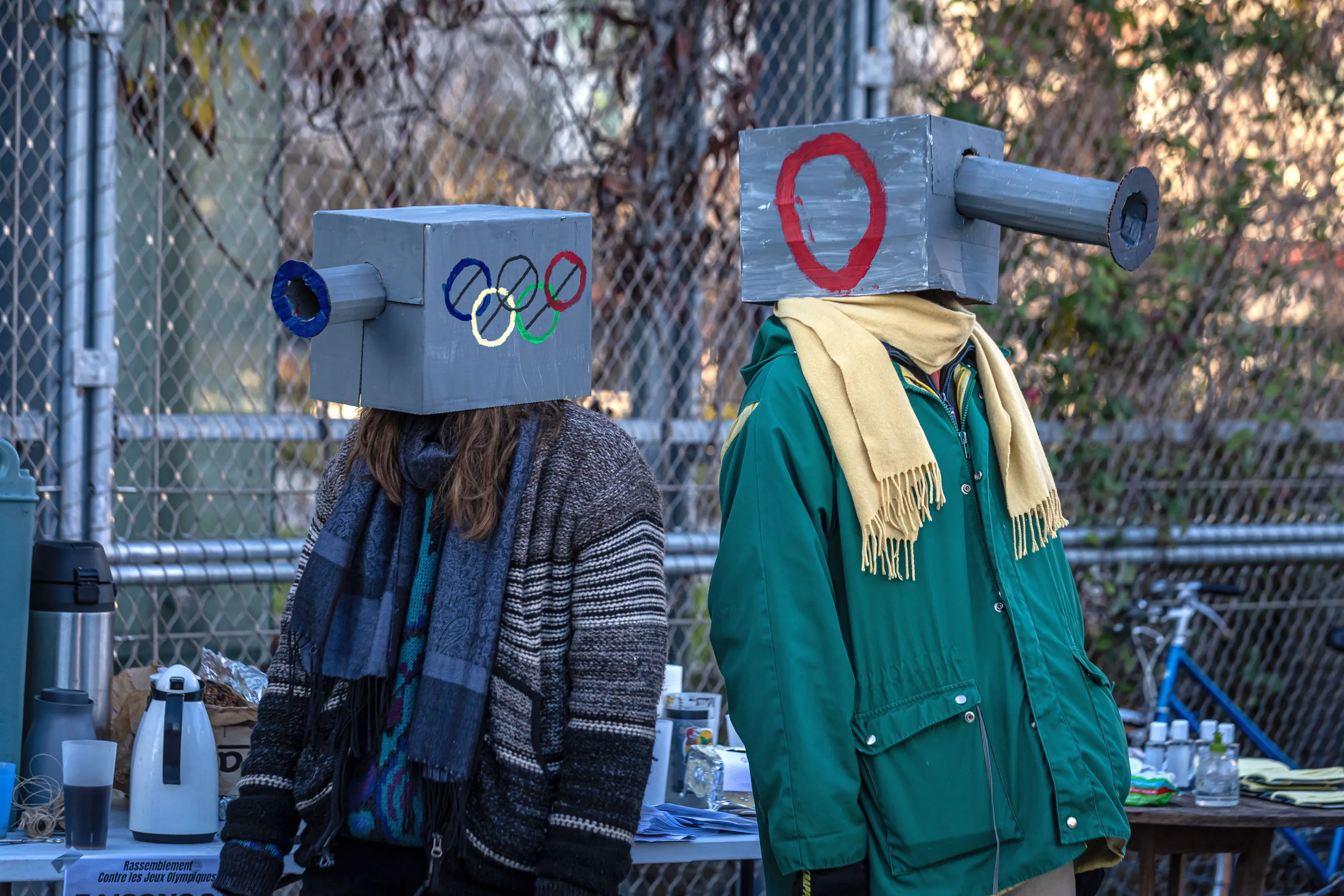 Environmental activists and members of the collective 'Saccage 2024' gather in front of the Paris 2024 Olympic Games Organizing Committee in Saint Denis, near Paris, France, 11 December 2022. Saccage 2024 denounces the ecological and social impact of the building sites of the Olympic Games for the inhabitants of Seine-Saint-Denis, the poorest department of France, in the north of Paris. (Photo by Christophe Petit Tesson/EPA/EFE)