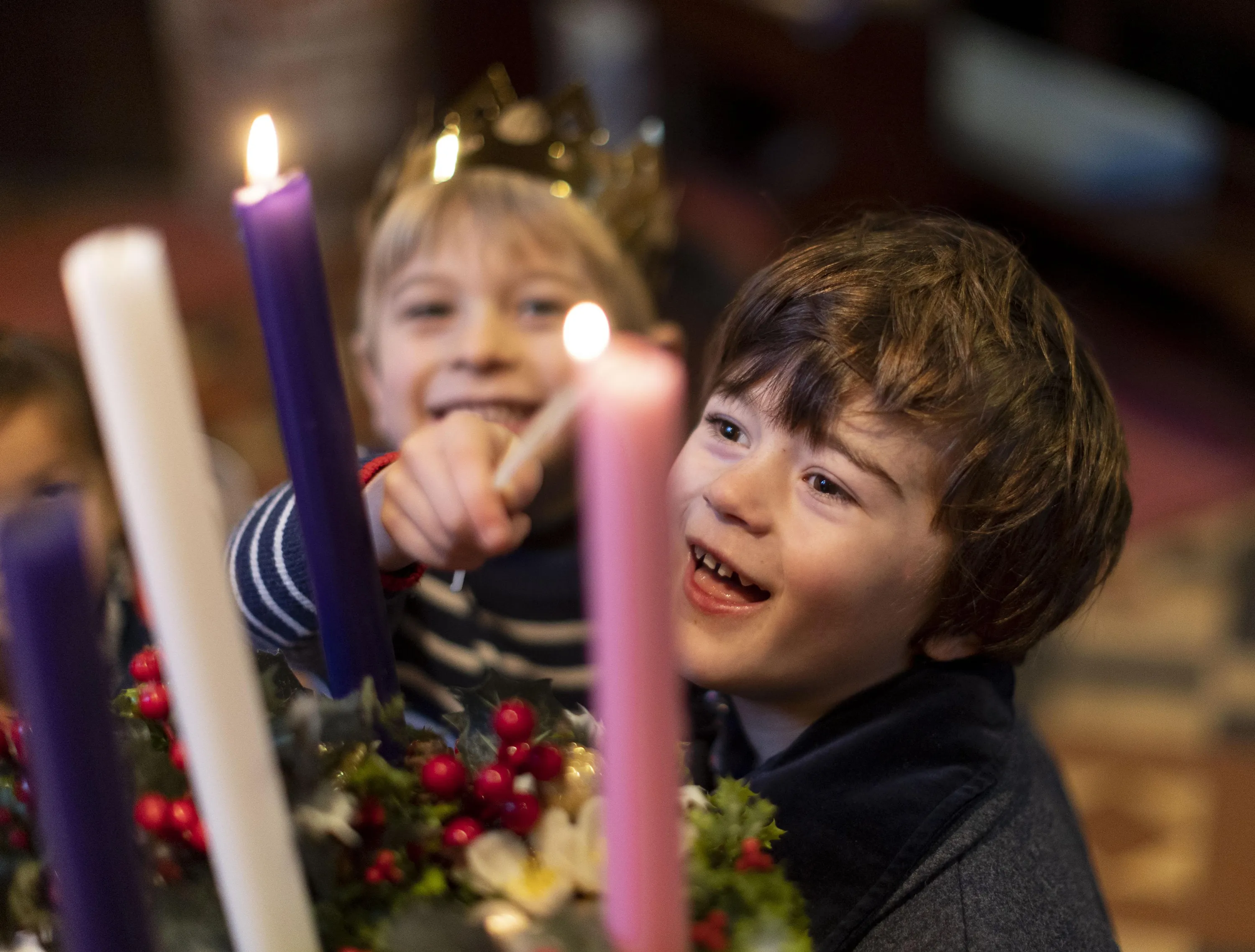 Children helped to light the pink candle marking the third Sunday of Advent at St Peter’s Church in Headley, Berkshire on December 11, 2022. (Photo by David Hartley/Press Photos Ltd)